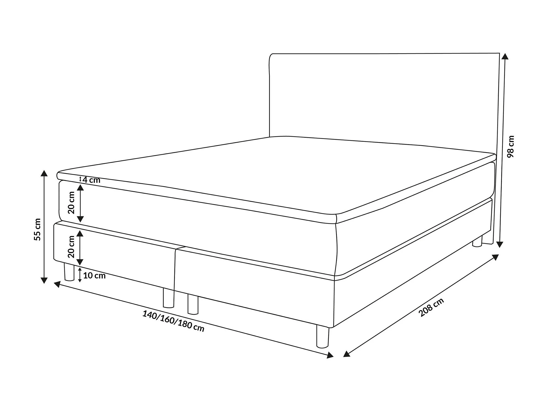 Lit boxspring BOSS, lit rembourré Dimensions : 160 x 200 cm, couleur : noir, tissu velours, lit double avec matelas Bonell H3 et surmatelas inclus