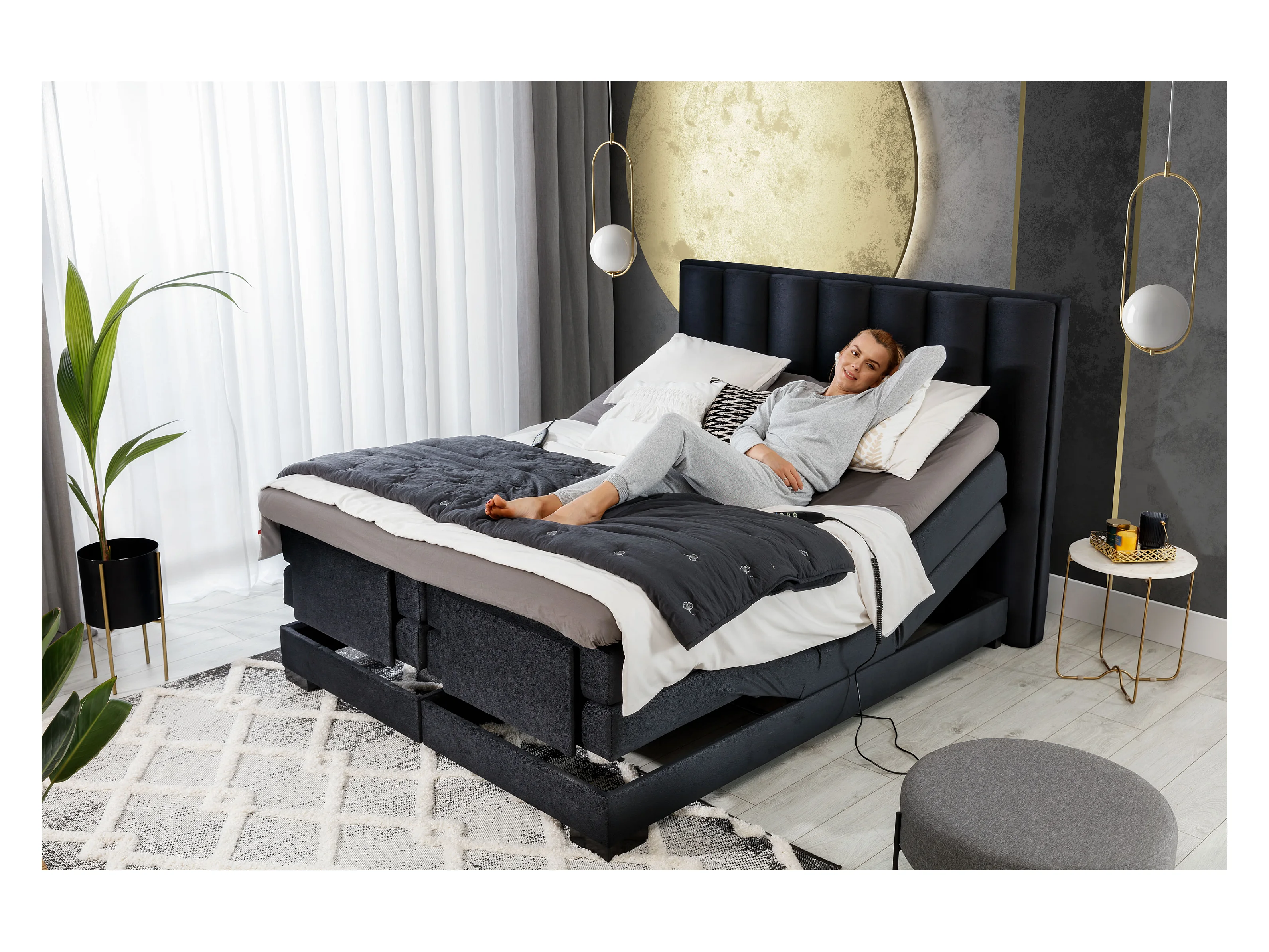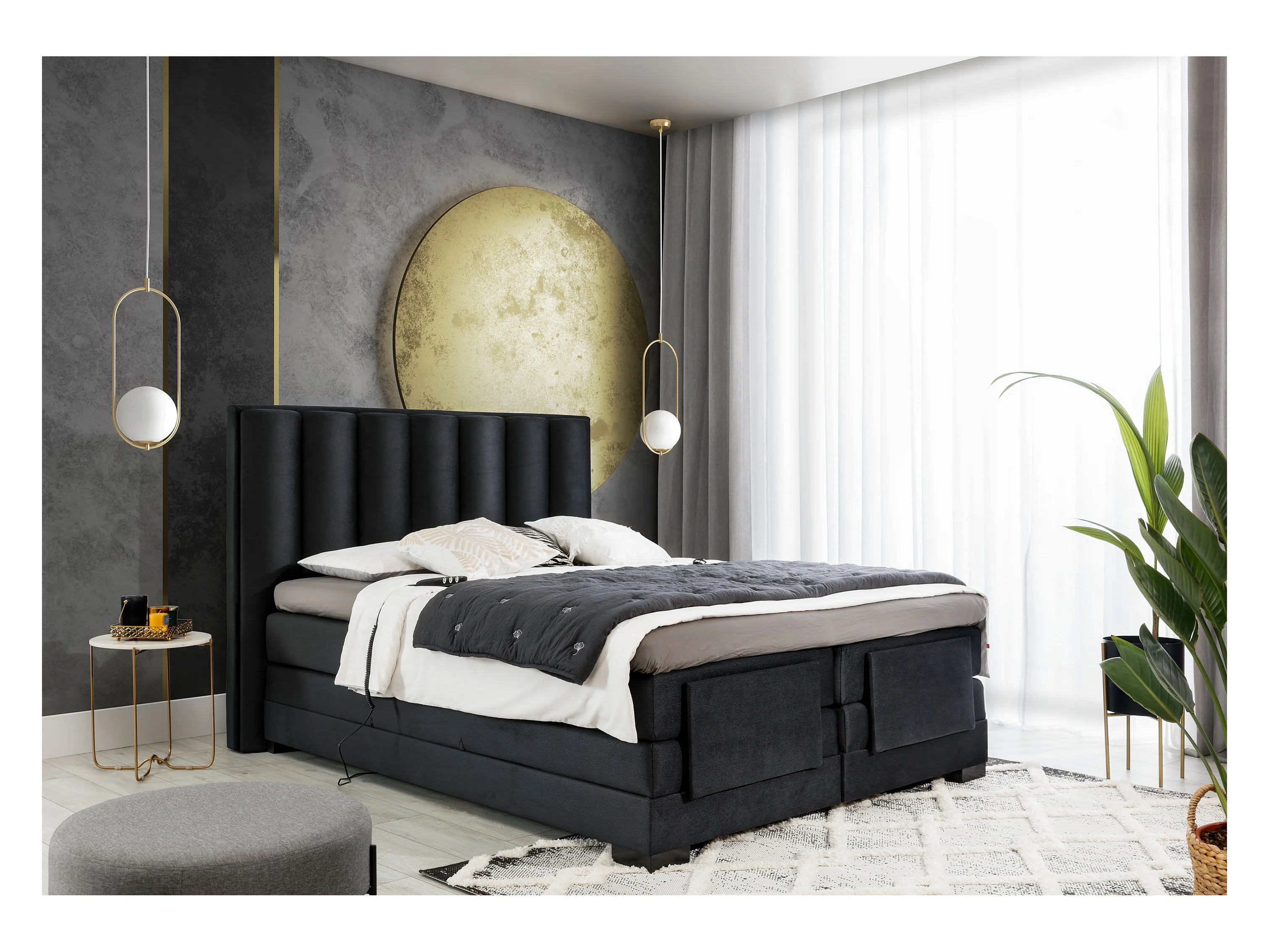 Lit boxspring électrique velours noir avec matelas et surmatelas Arkos-160x200