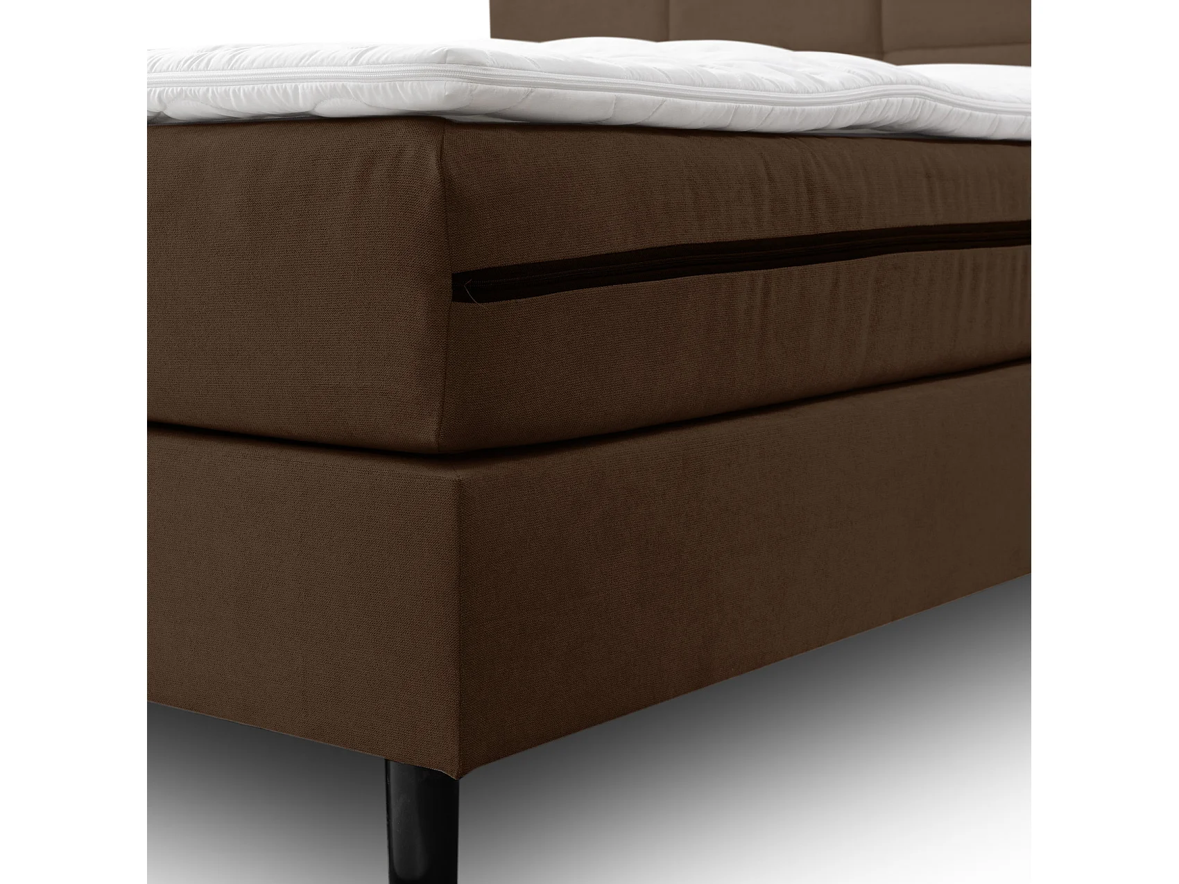 Lit boxspring Paris, lit rembourré Dimensions : 140x200 cm, couleur : marron, tissu velours, lit double avec matelas Bonell H3 et surmatelas inclus