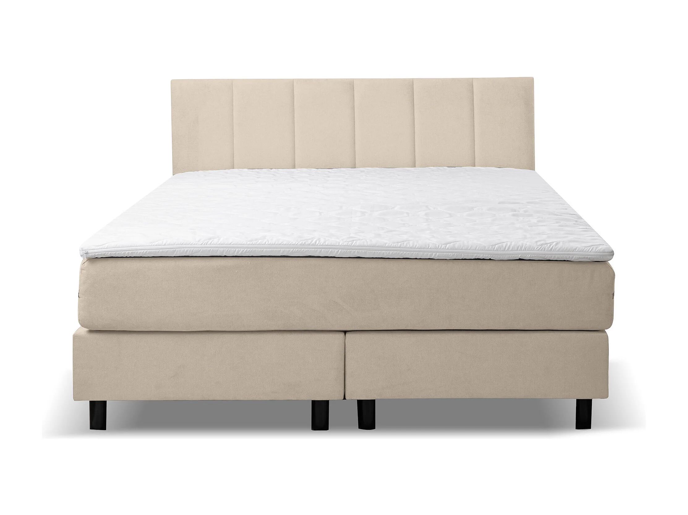 Lit boxspring Paris, lit rembourré Dimensions : 160x200 cm, couleur : beige, tissu velours, lit double avec matelas Bonell H3 et surmatelas inclus
