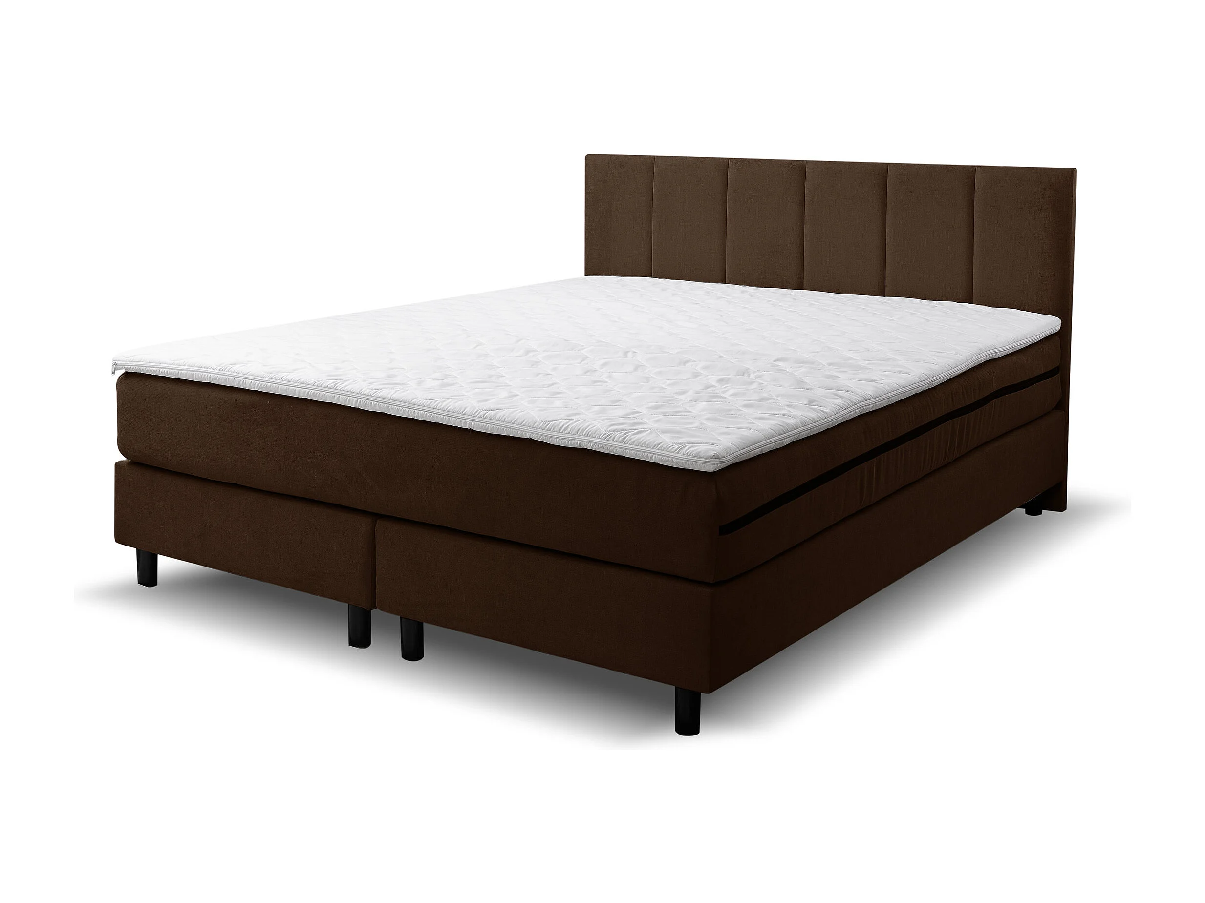 Lit boxspring Paris, lit rembourré Dimensions : 160x200 cm, couleur : marron, tissu velours, lit double avec matelas Bonell H3 et surmatelas inclus