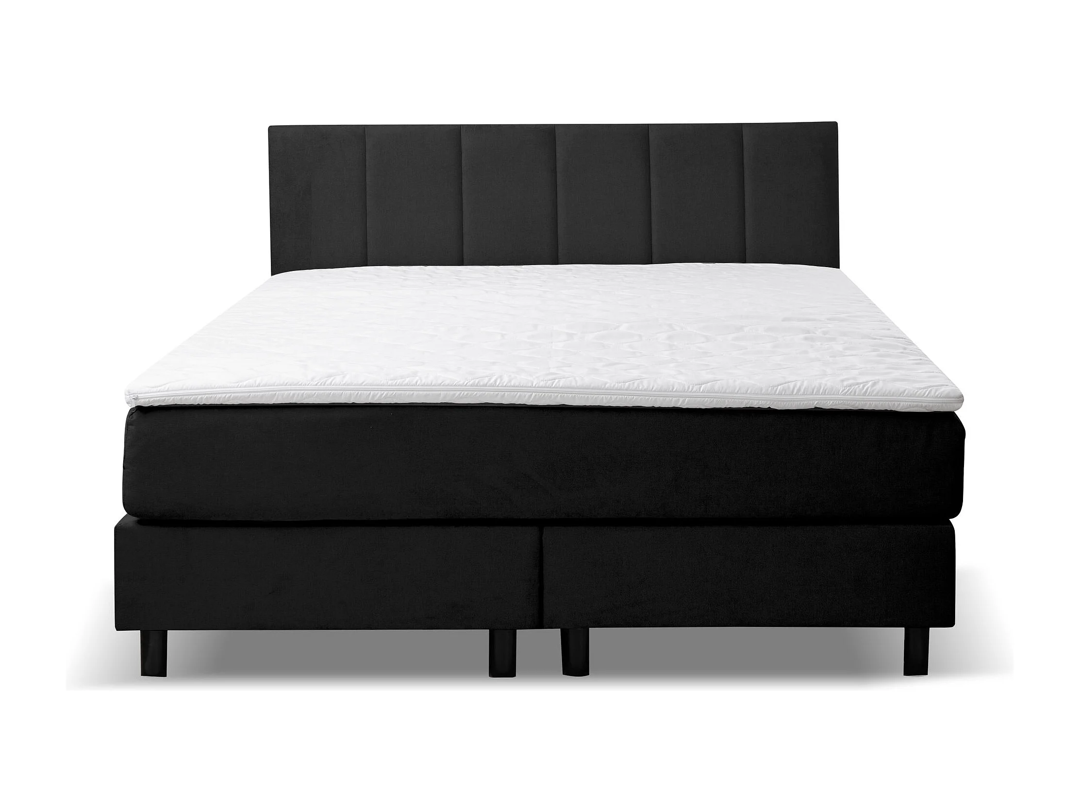 Lit boxspring Paris, lit rembourré Dimensions : 160x200 cm, couleur : noir, tissu velours, lit double avec matelas Bonell H3 et surmatelas inclus