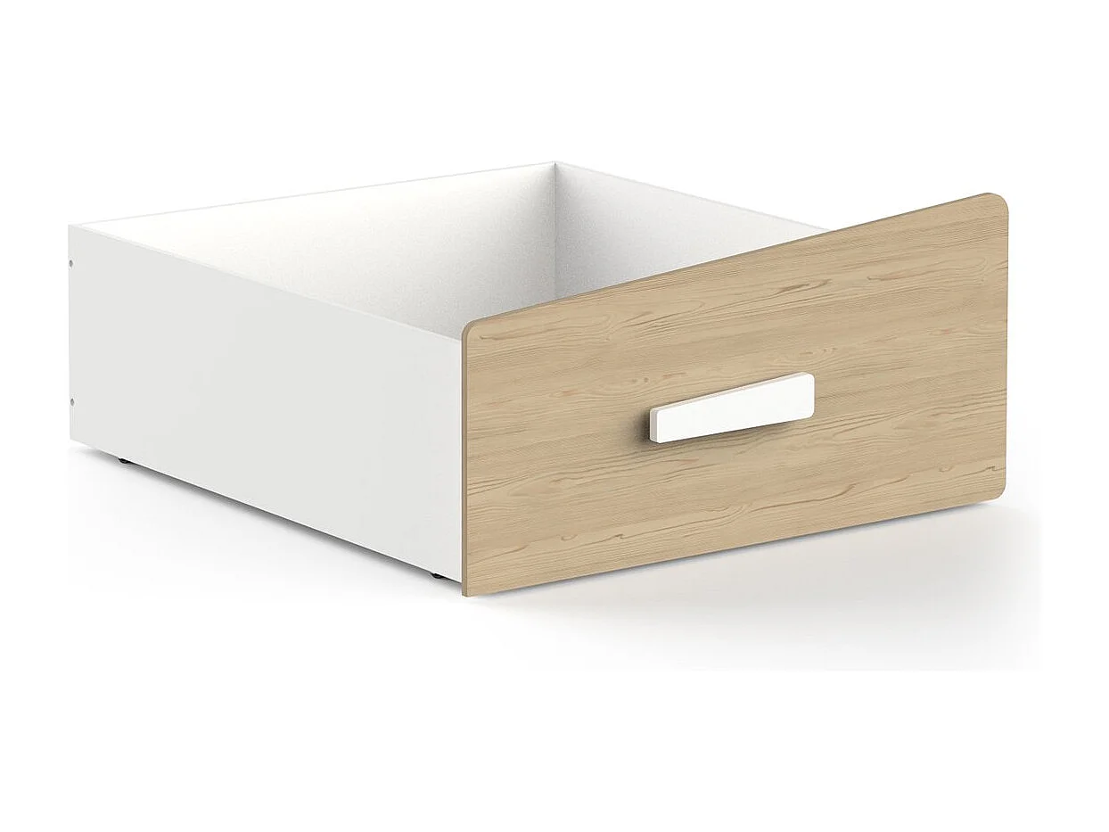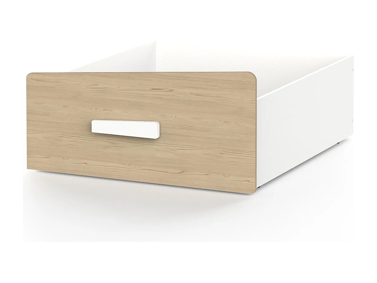 Lit cabane 90x200 avec tiroir blanc et décor chêne - CABANE