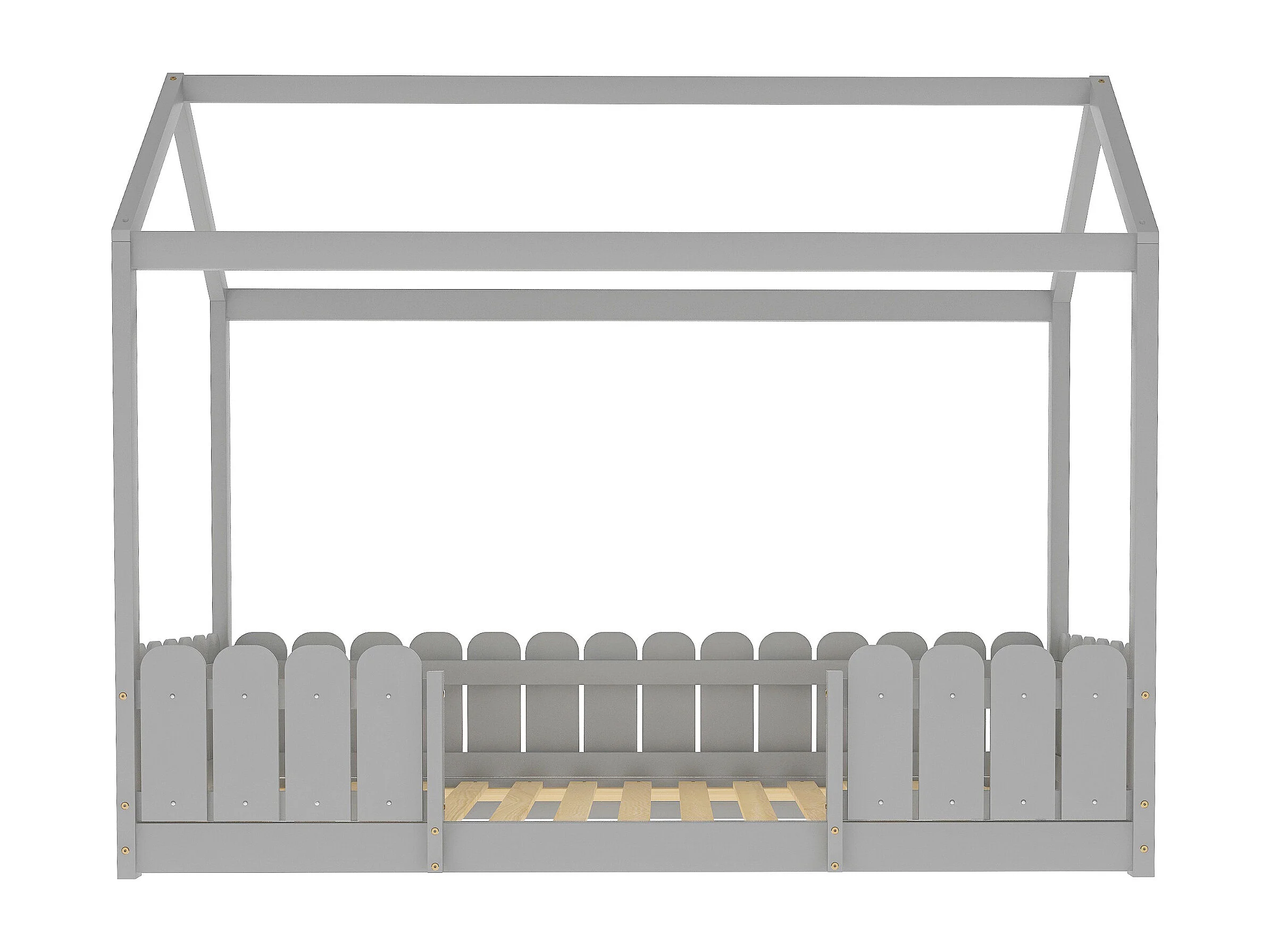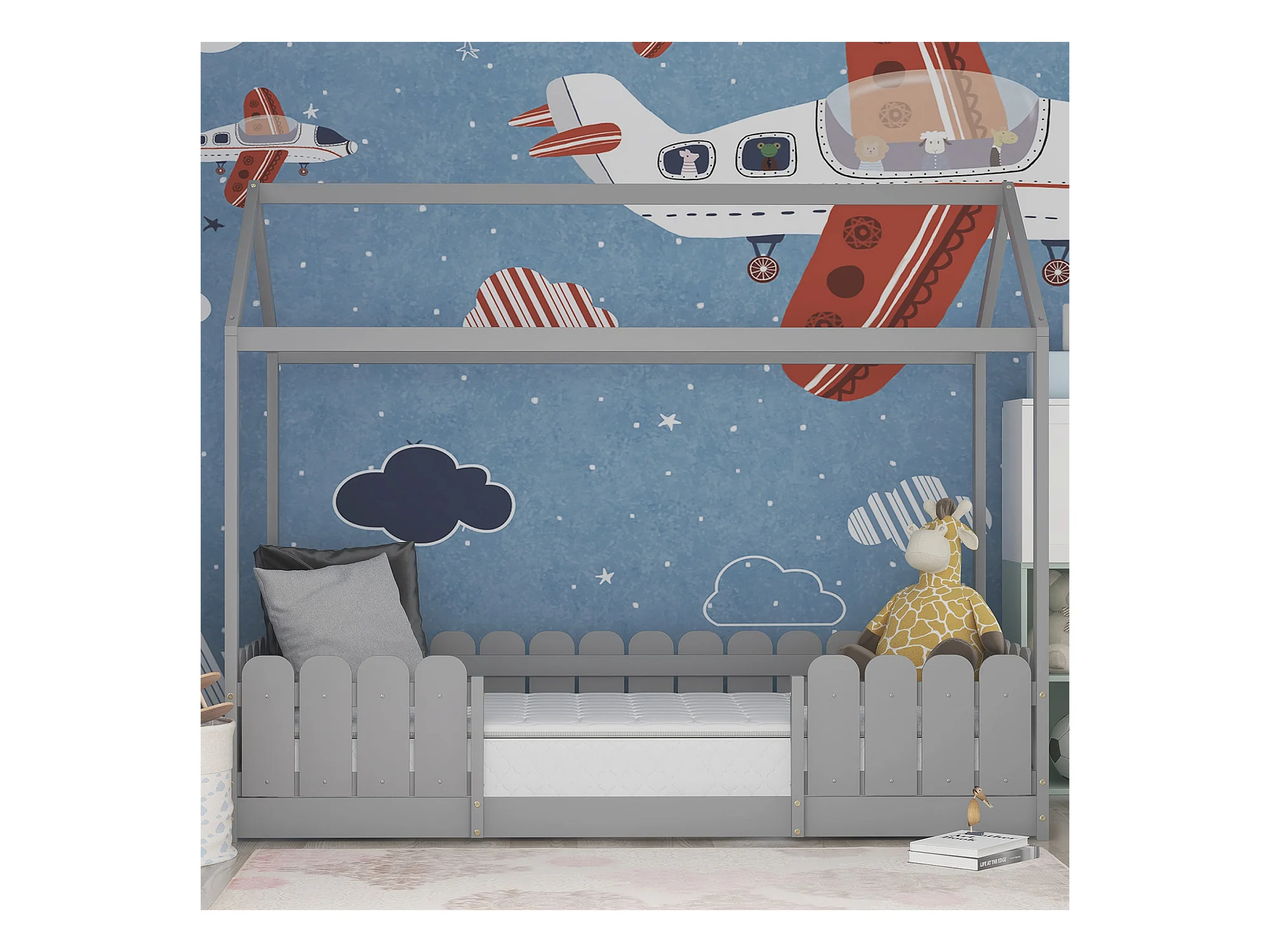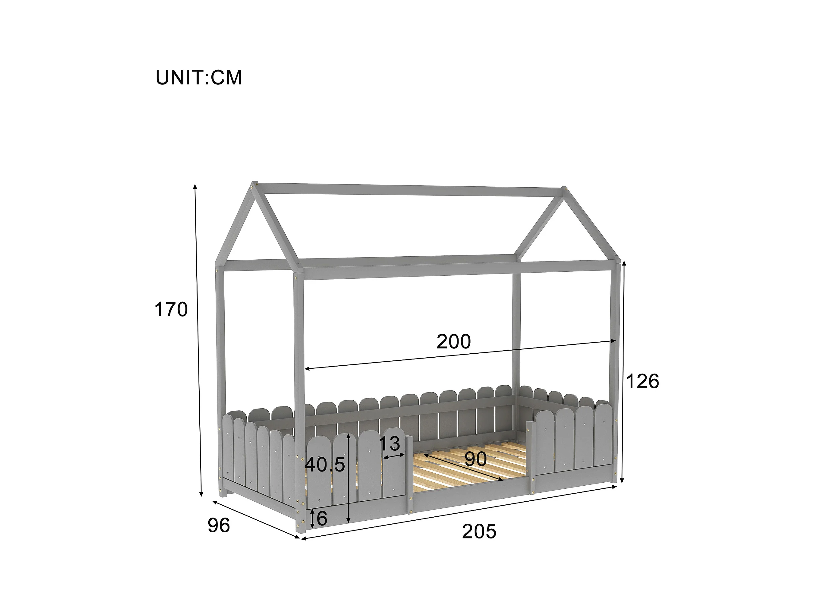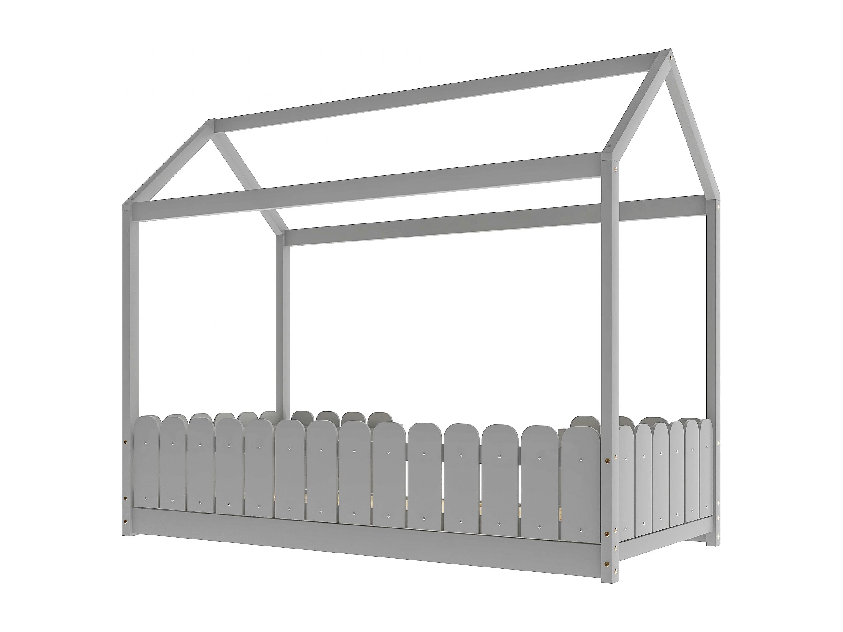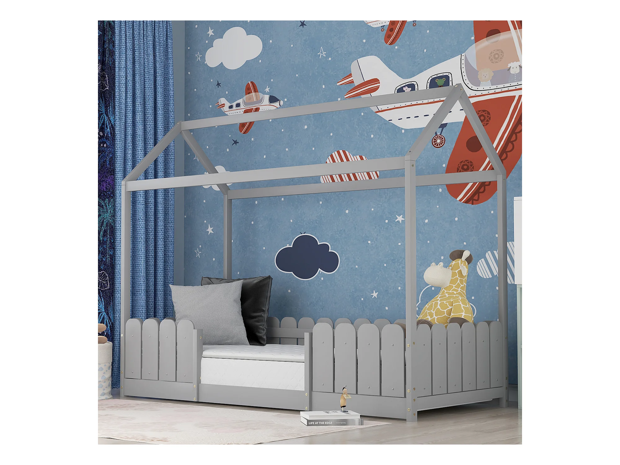Lit cabane 90x200 cm - Lit d'enfant en bois polyvalent pour garçons & filles - Avec protection contre les chutes et sommier à lattes - Gris (Sans matelas)