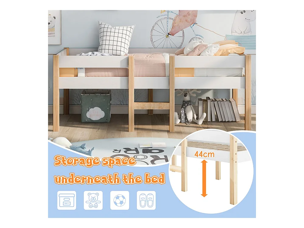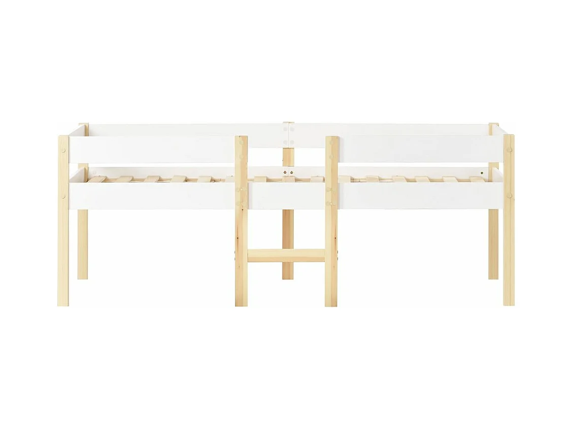 Lit cabane avec protection antichute - échelle - 90x190 cm - blanc - Sweiko