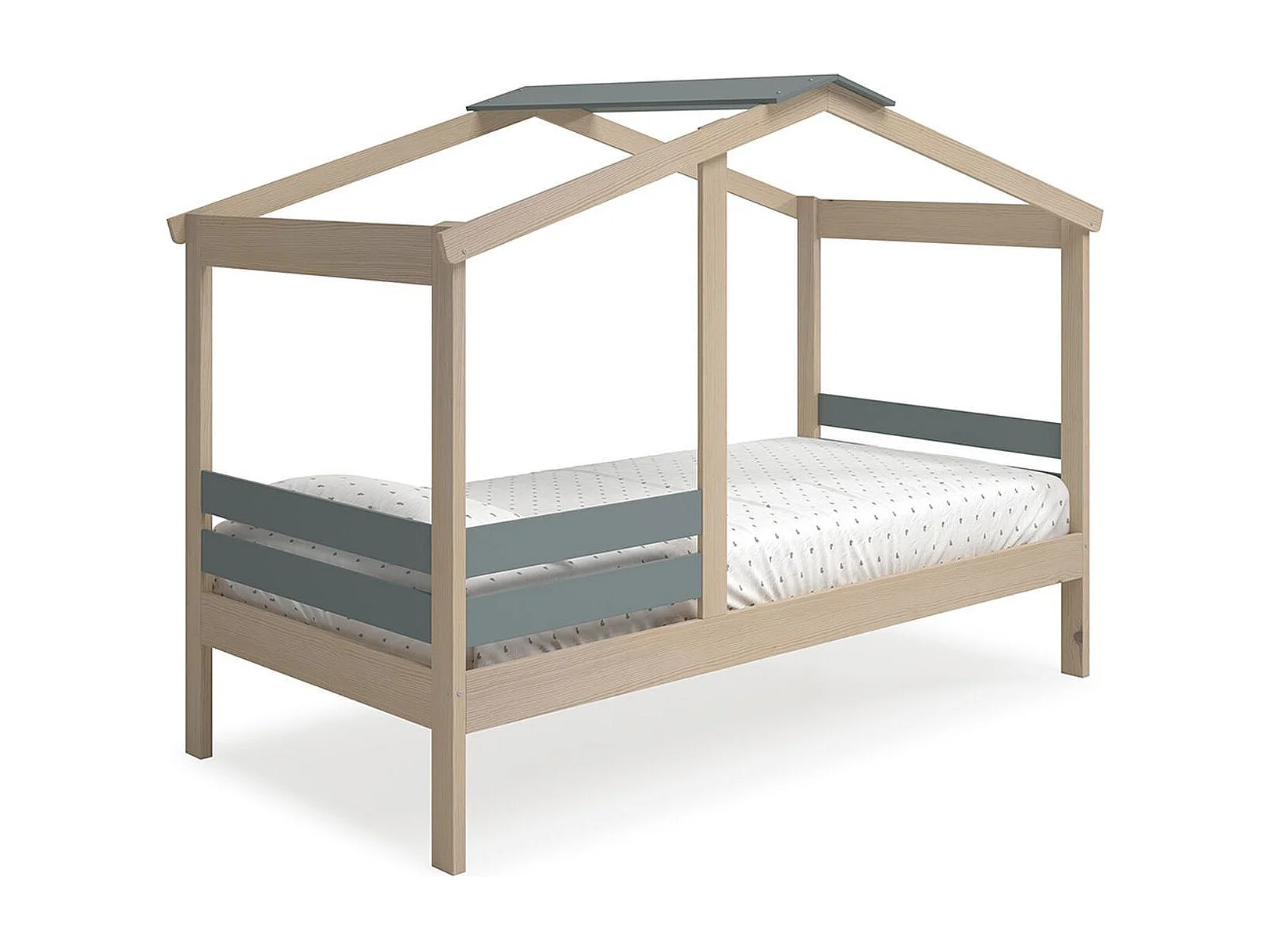 Lit cabane enfant 90x190 cm en bois clair/vert kaki - Violette