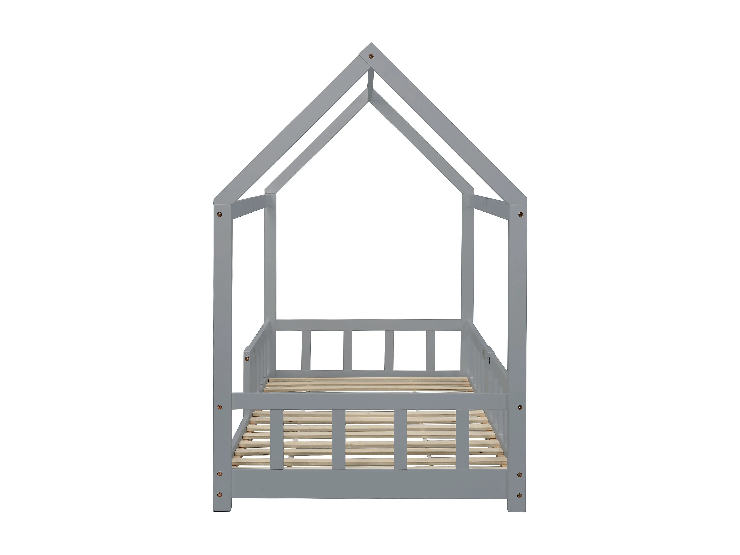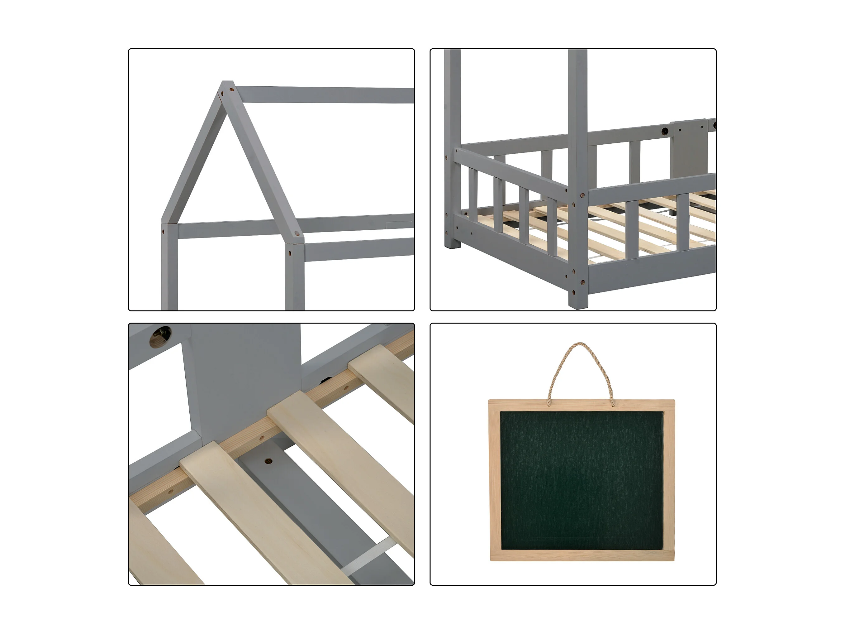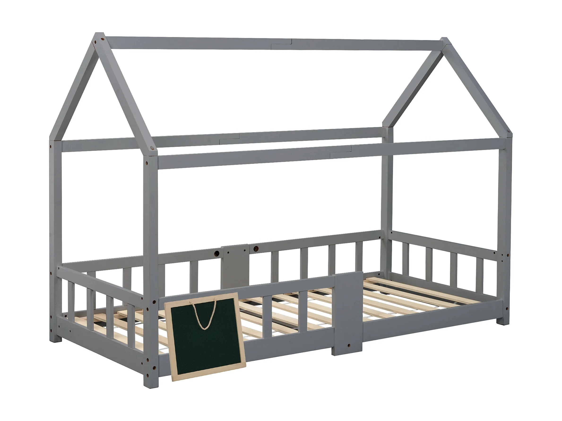 Lit cabane enfant 90x200 cm avec tablette - sommier à lattes antichute en Pin - gris(sans matelas)