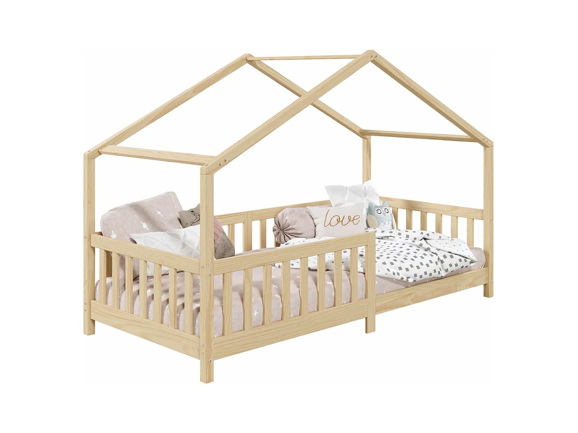 Lit cabane enfant 90x200 cm LISAN lit Simple montessori avec Barrières de Protection en Bois Massif naturel