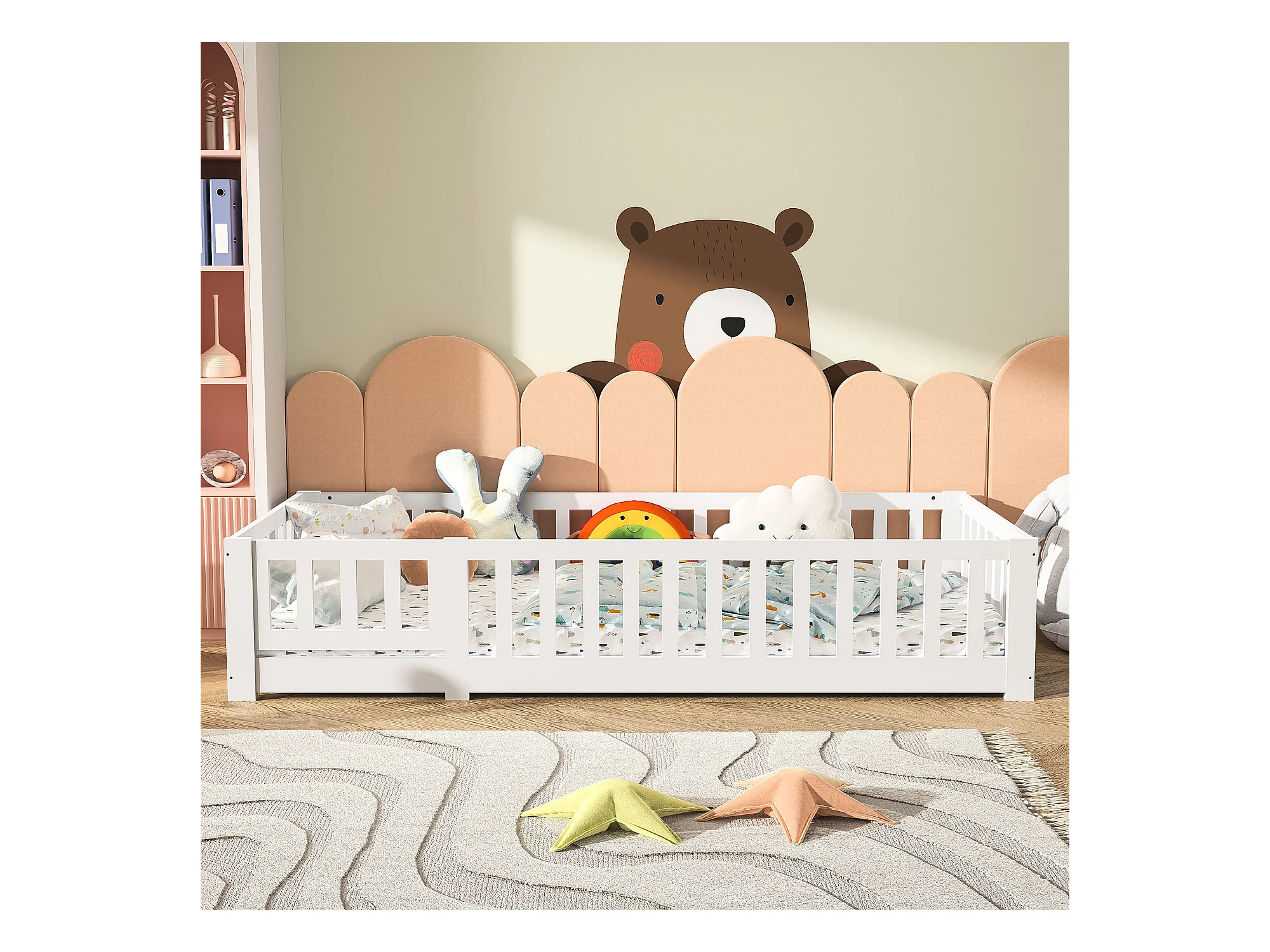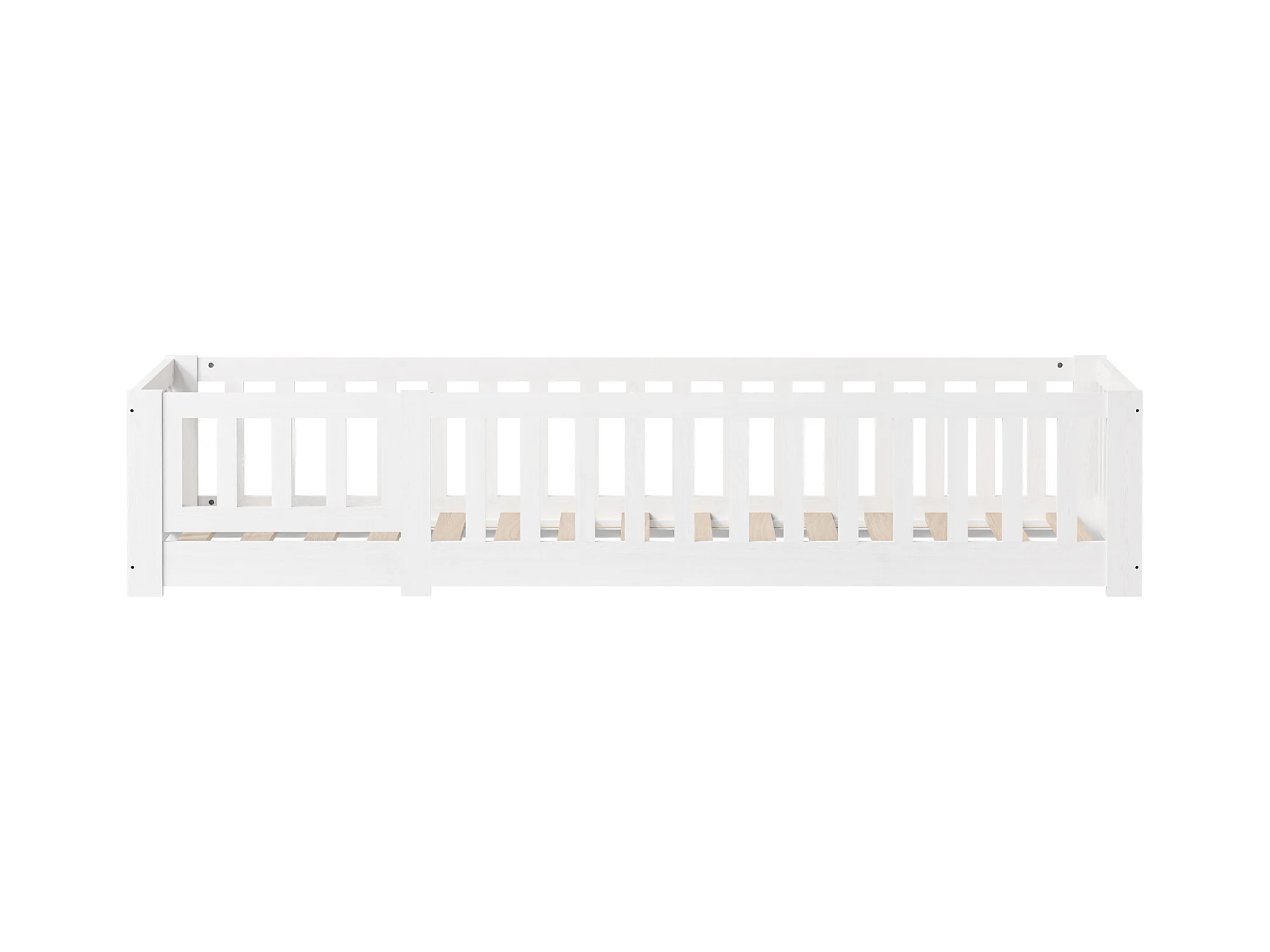 Lit cabane enfant 90x200cm, avec sommier à lattes, lit plat, lit enfant, barrière antichute, pin massif, Blanc