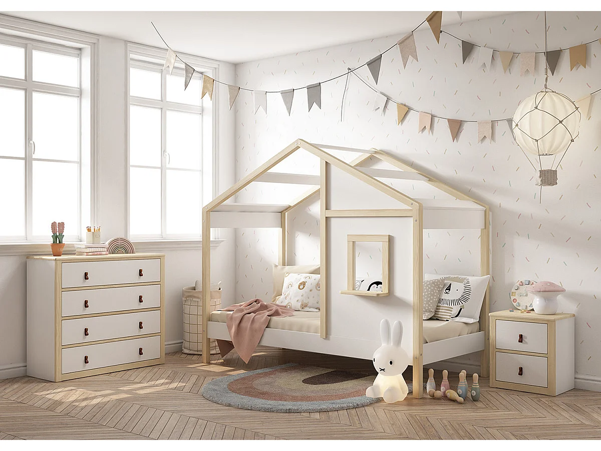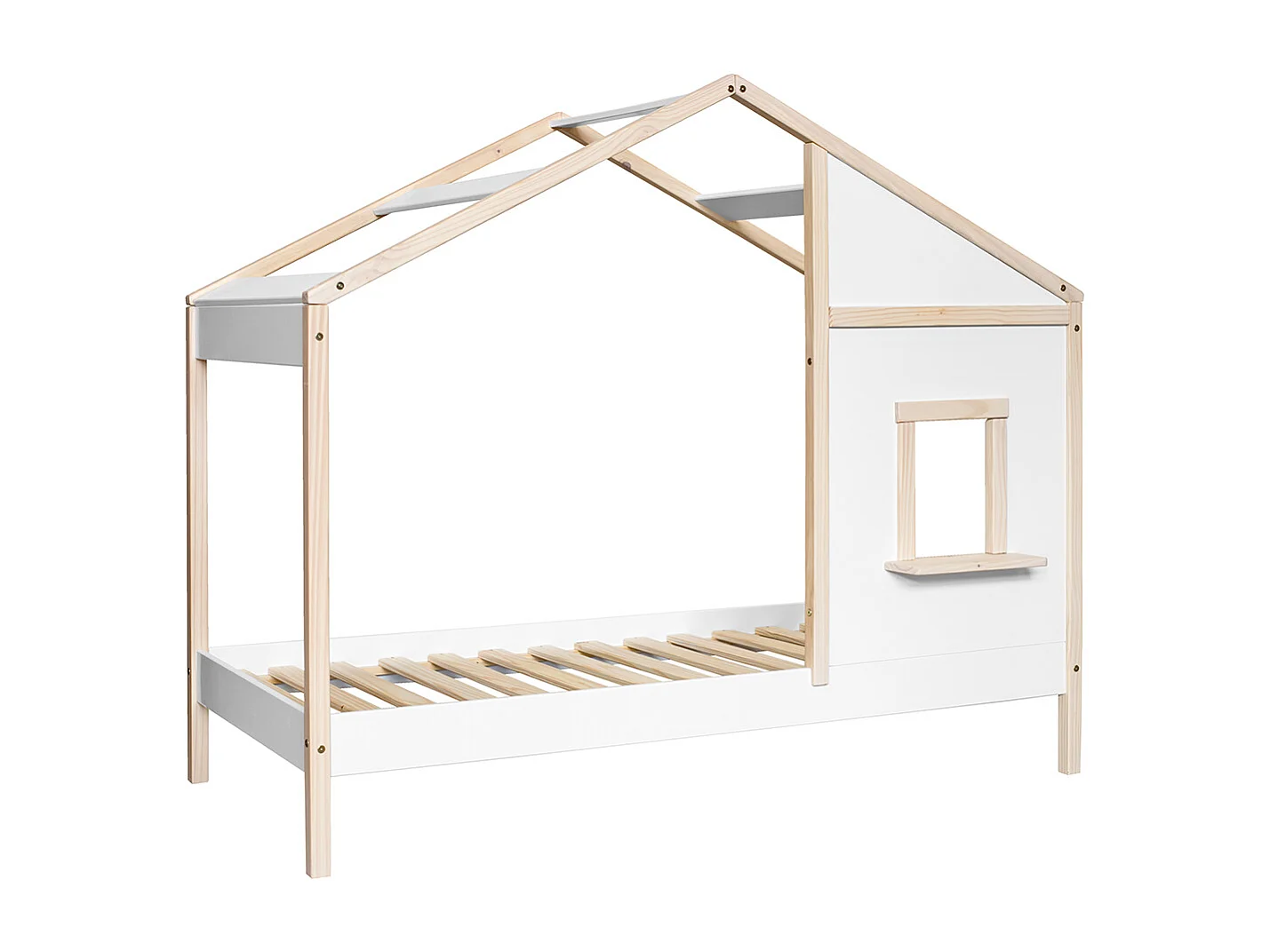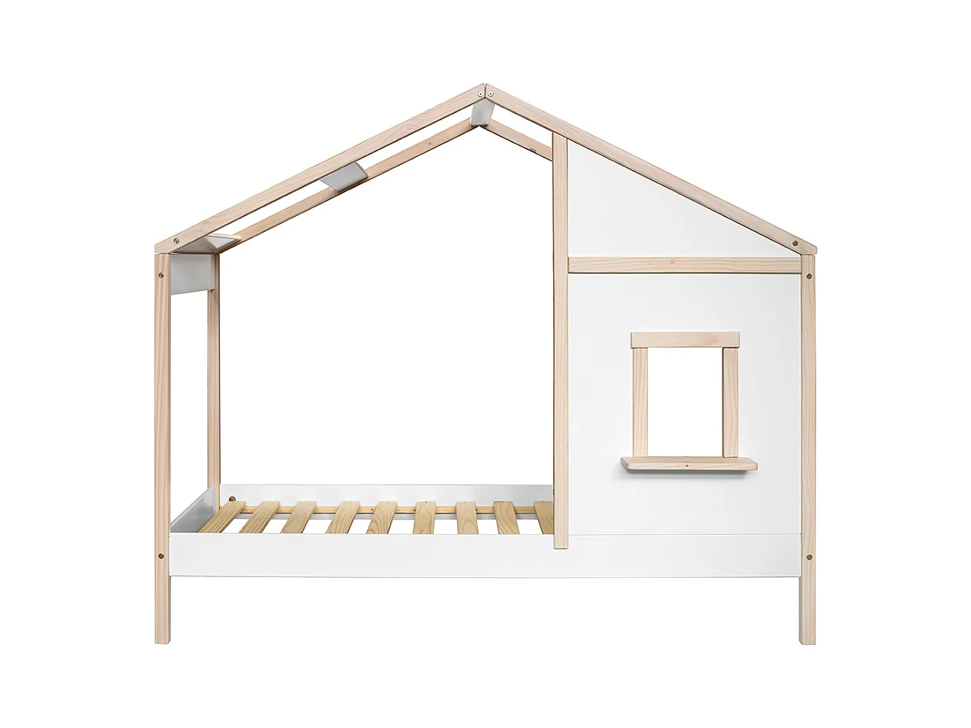 Lit cabane enfant en bois de pin massif coloris blanc, naturel - Hauteur 168,60 x largeur 195,5 x profondeur 96,60 cm