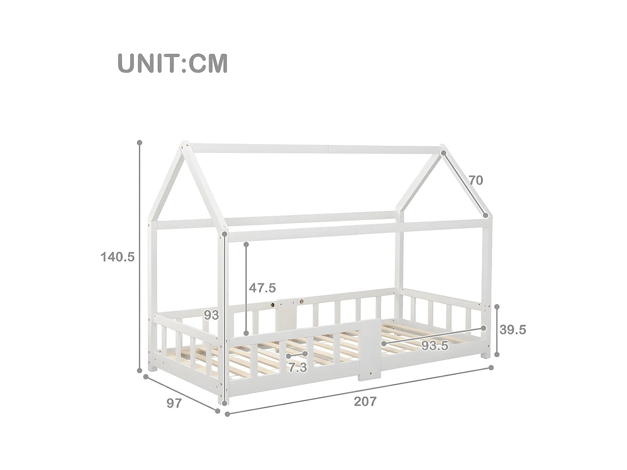 Lit cabane Lit d'enfant Lit de maison 90 x 200 cm, Blanc (sans matelas) - Sweiko