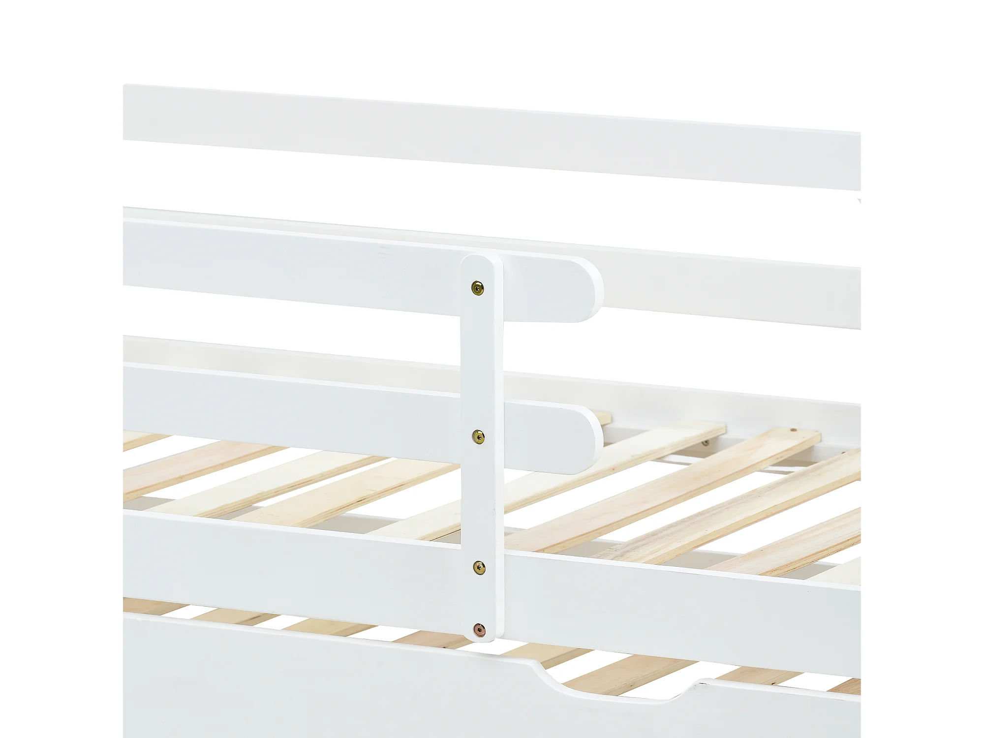 Lit Cabane Méridienne 200x90 cm Bois Massif avec Roulettes - Naturel et Blanc