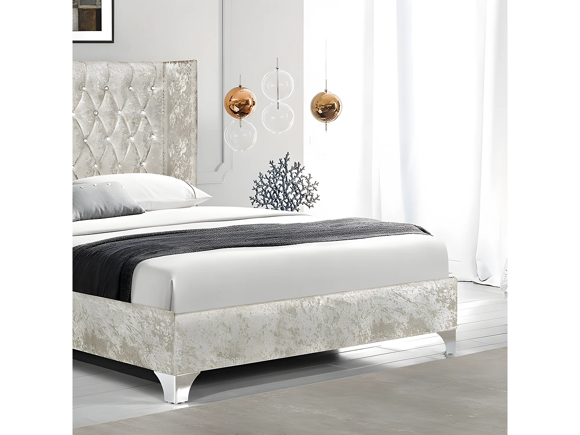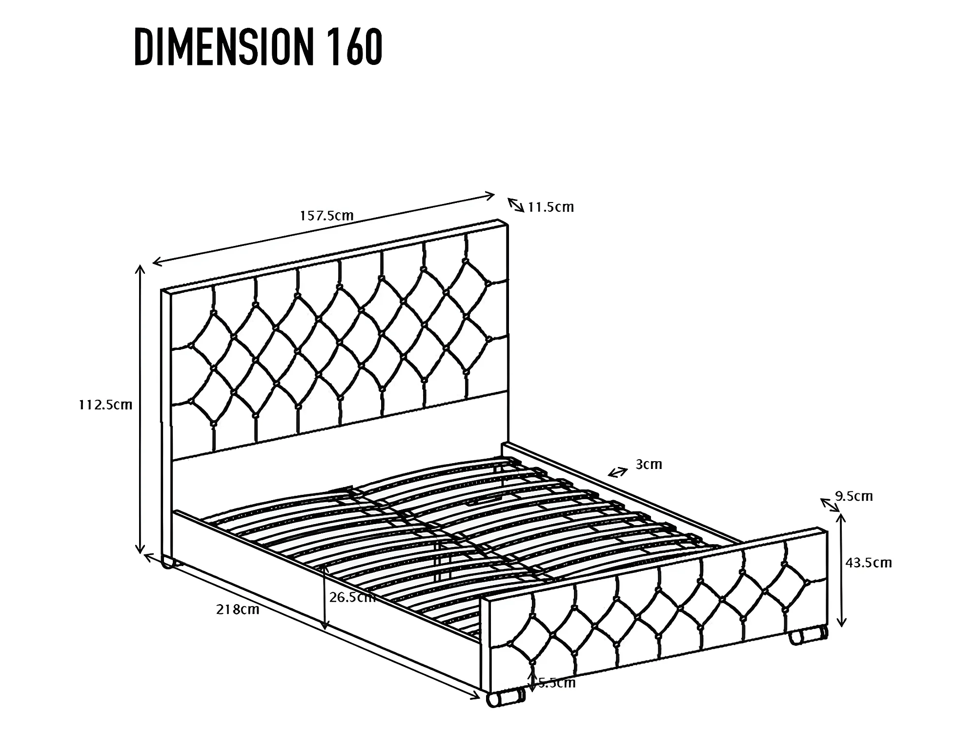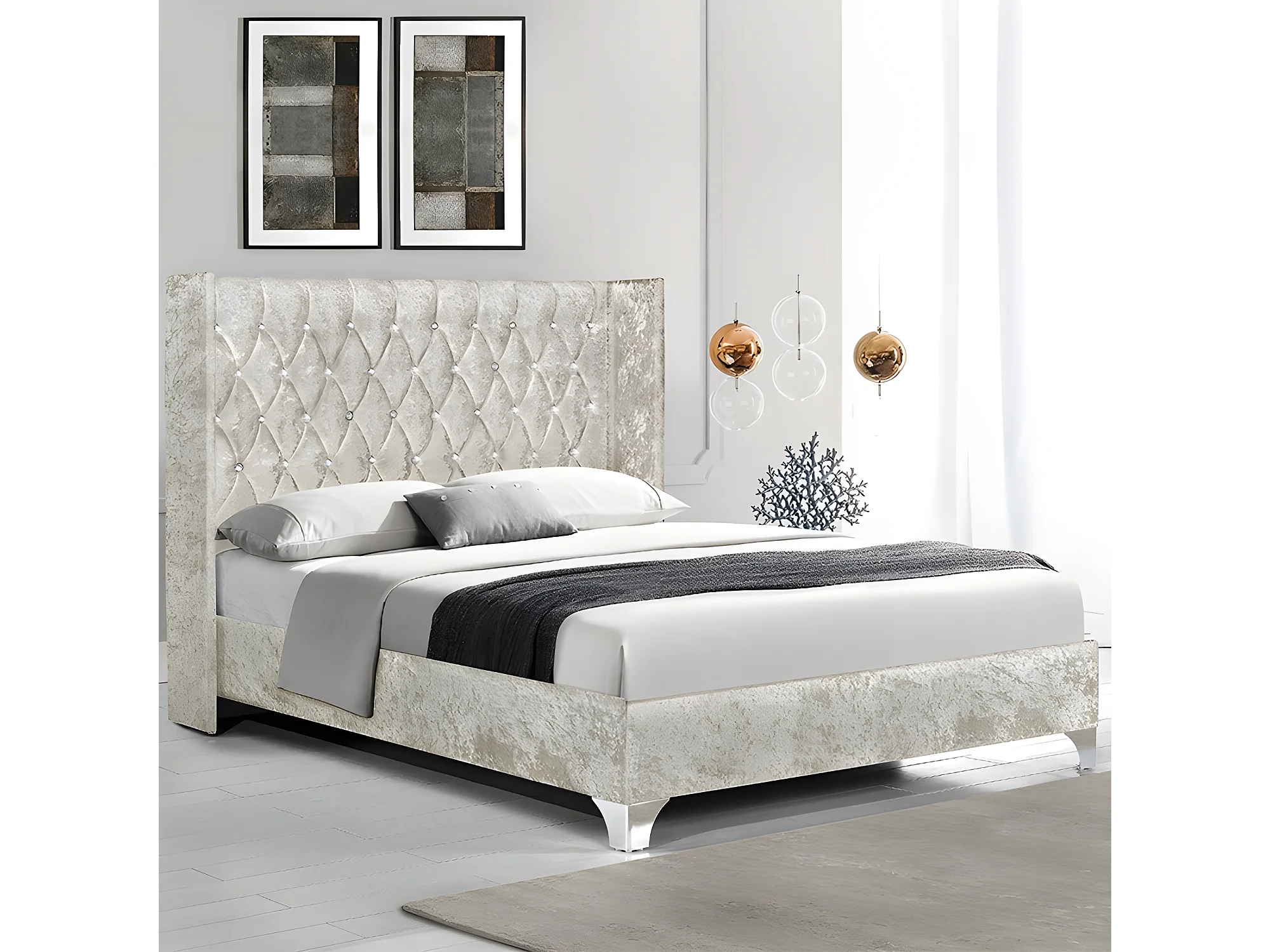 Lit Capitonné Grand Tête De Lit Focuse - Couleurs - Beige, Tailles - 160x200