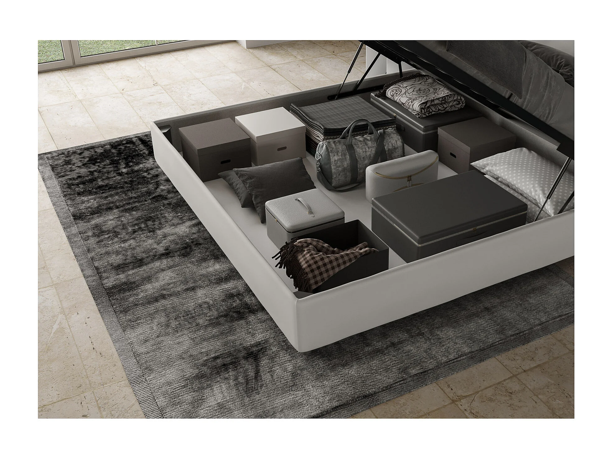 Lit capitonné microfibre Mira-Couleur Bleu foncé-140x190-Option Avec sommier