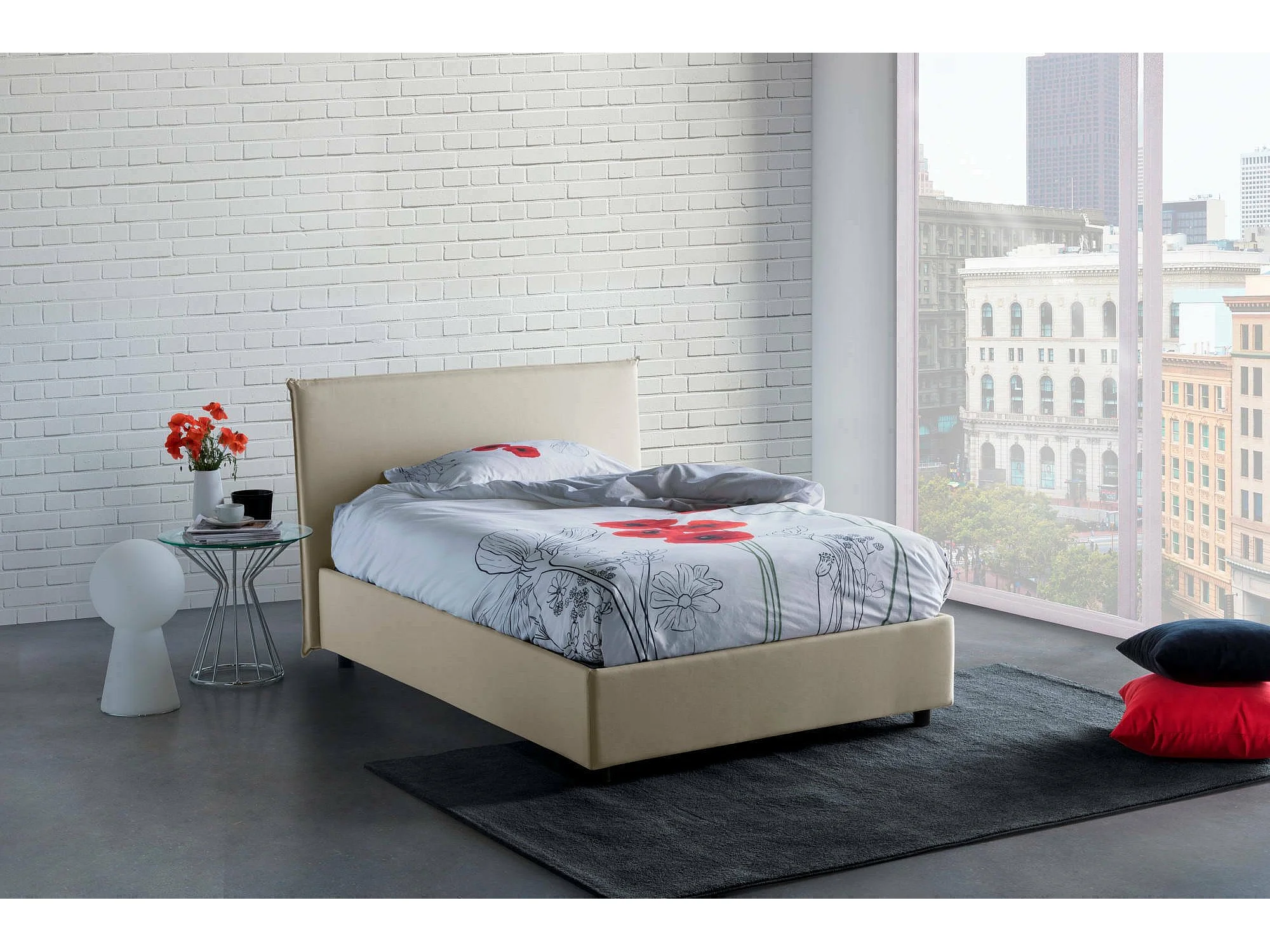 Lit double Dpalear, lit coffre avec revêtement en tissu, 100% Made in Italy, ouverture frontale, avec matelas 120x200 cm inclus, Beige