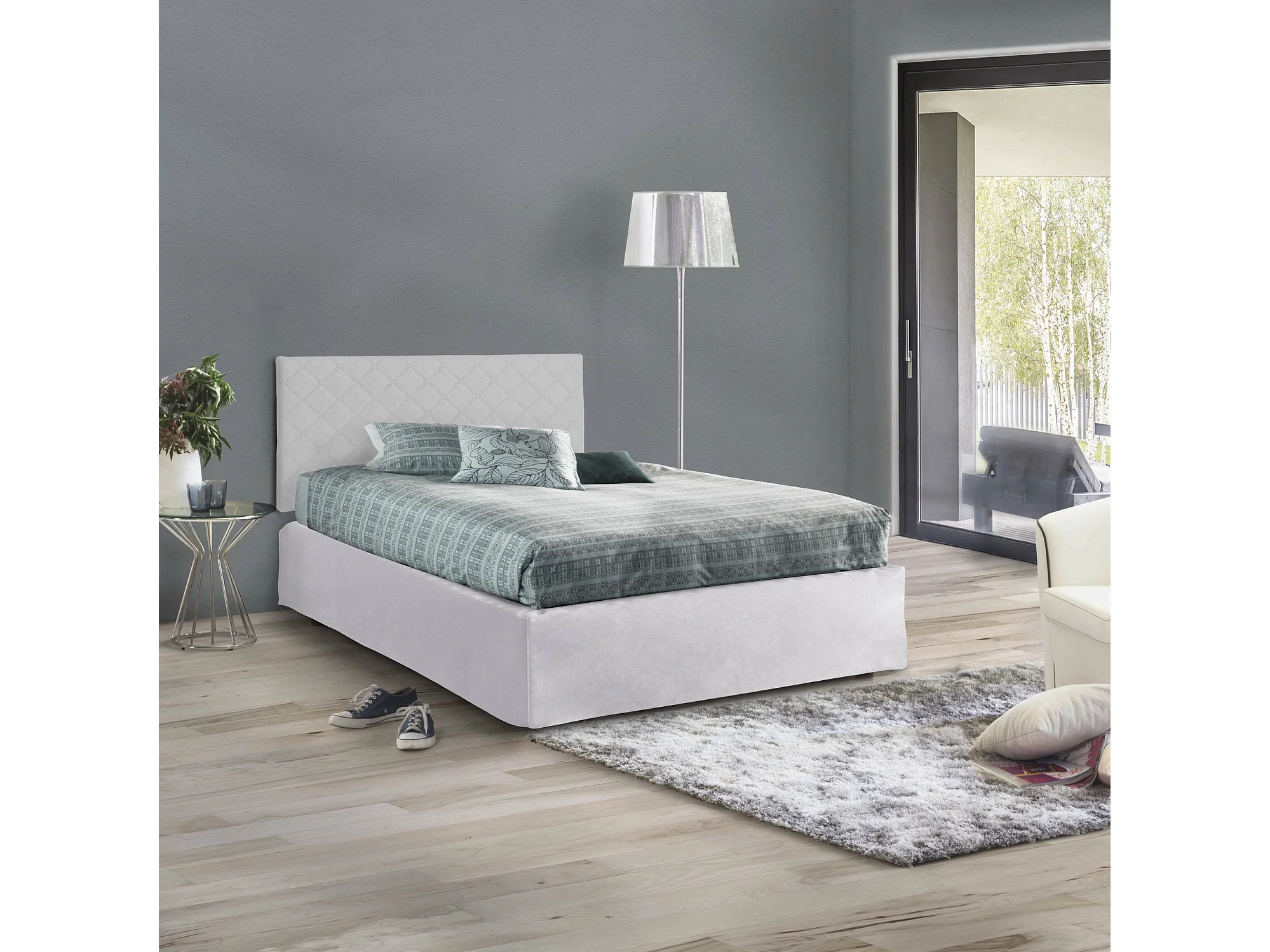 Lit double Dbellom, ensemble tête de lit en éco-cuir avec sommier orthopédique et cantonnière, 100% Made in Italy, avec matelas inclus, 120x190 cm, Blanc
