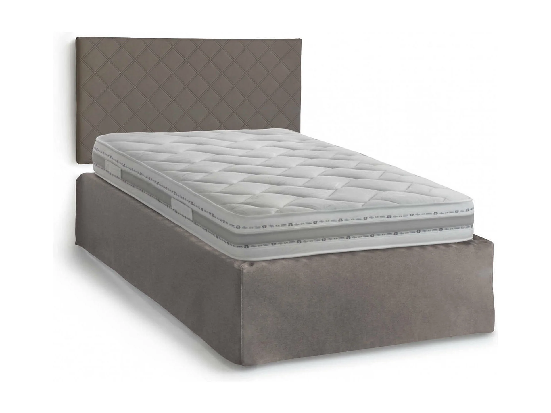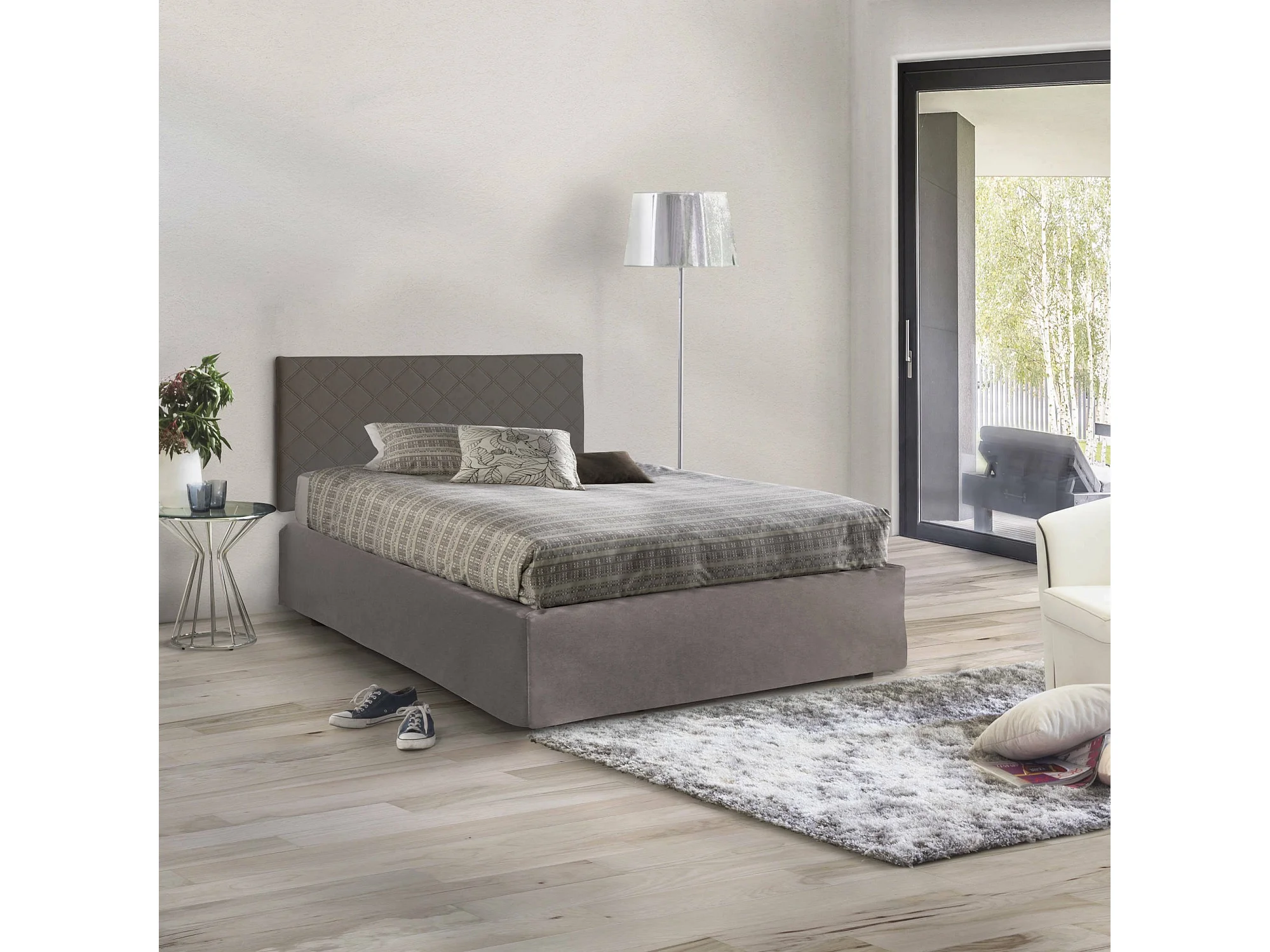 Lit double Dbellom, ensemble tête de lit en éco-cuir avec sommier orthopédique et cantonnière, 100% Made in Italy, avec matelas inclus, 120x190 cm, gris tourterelle