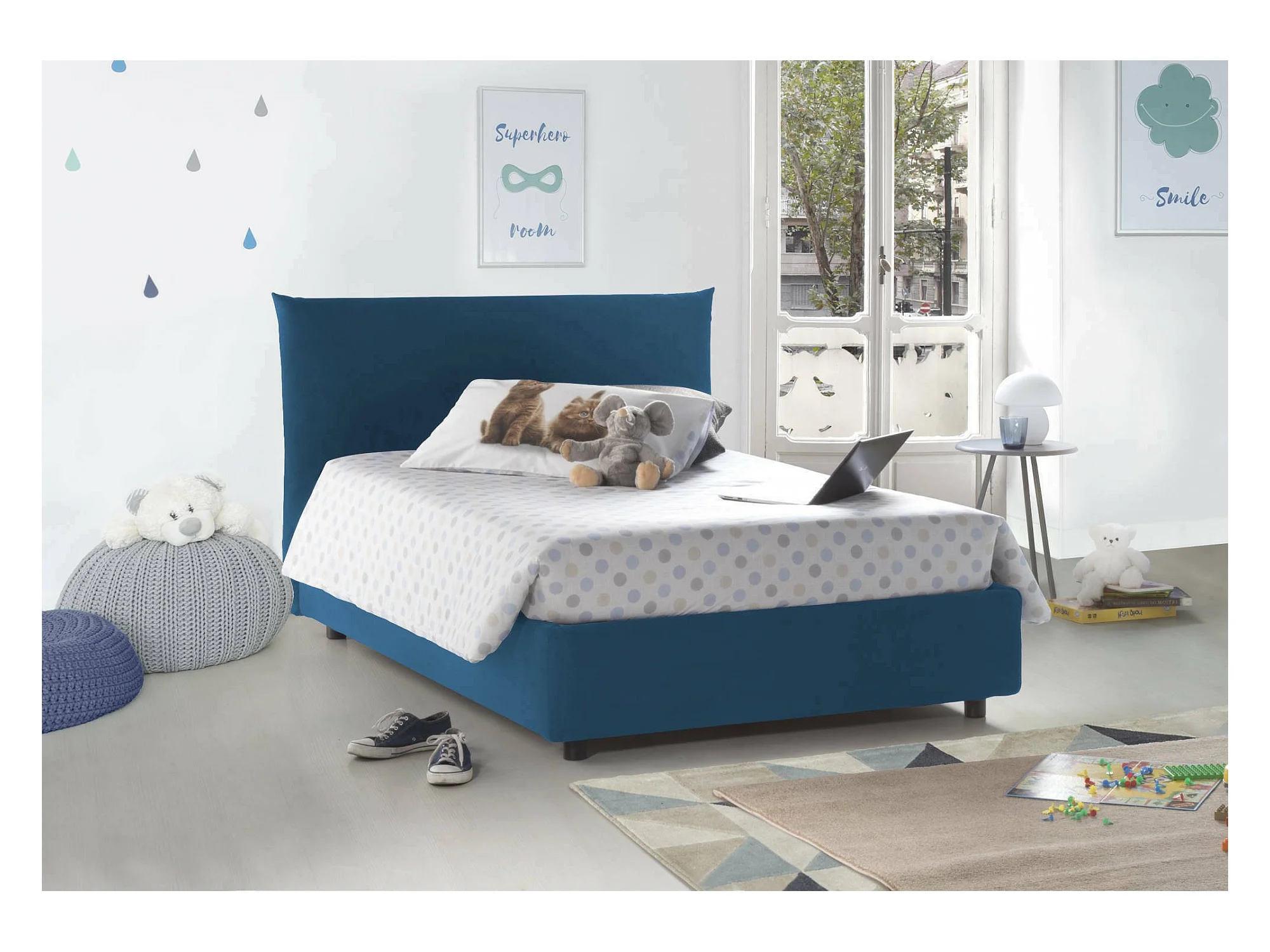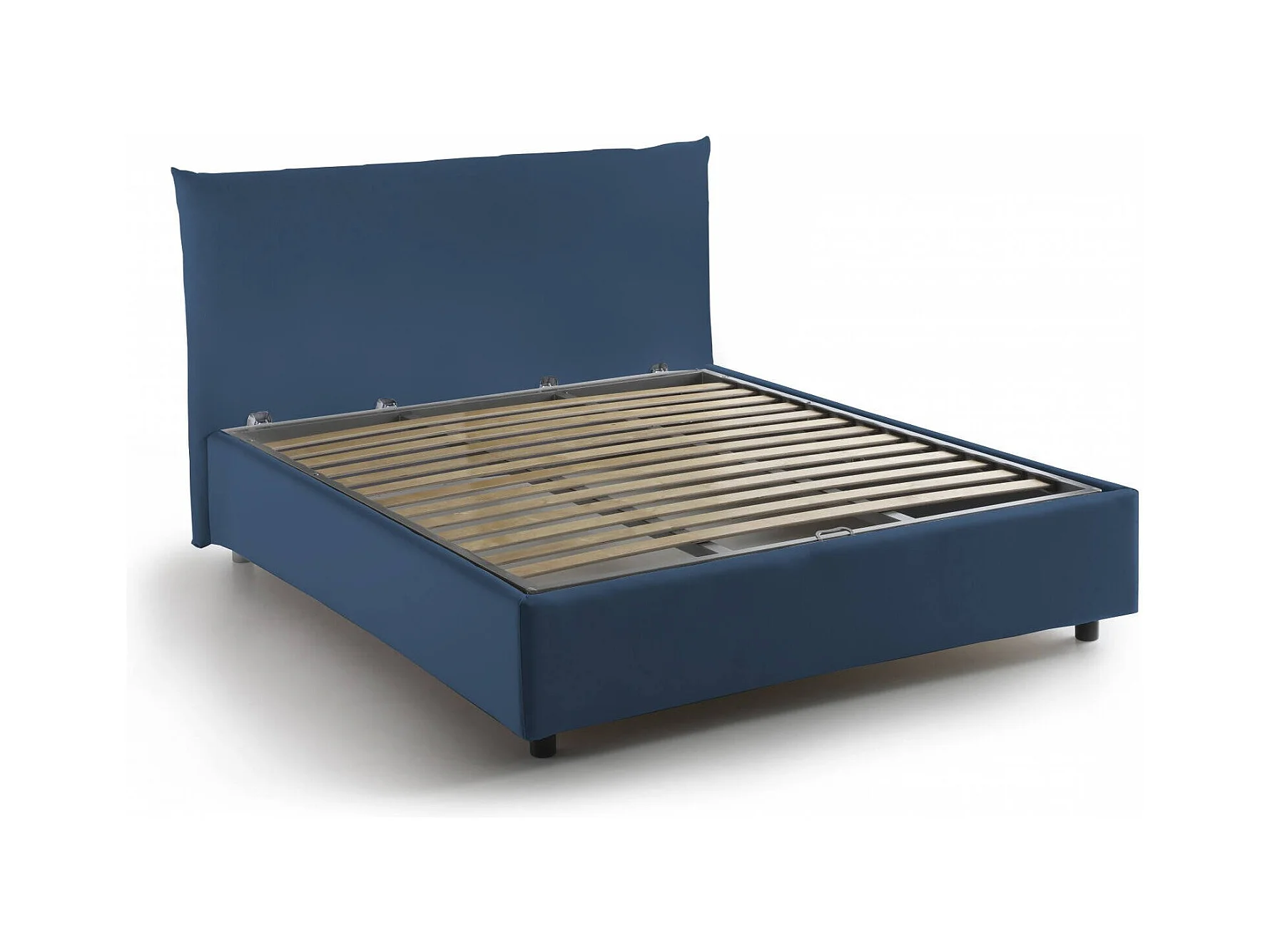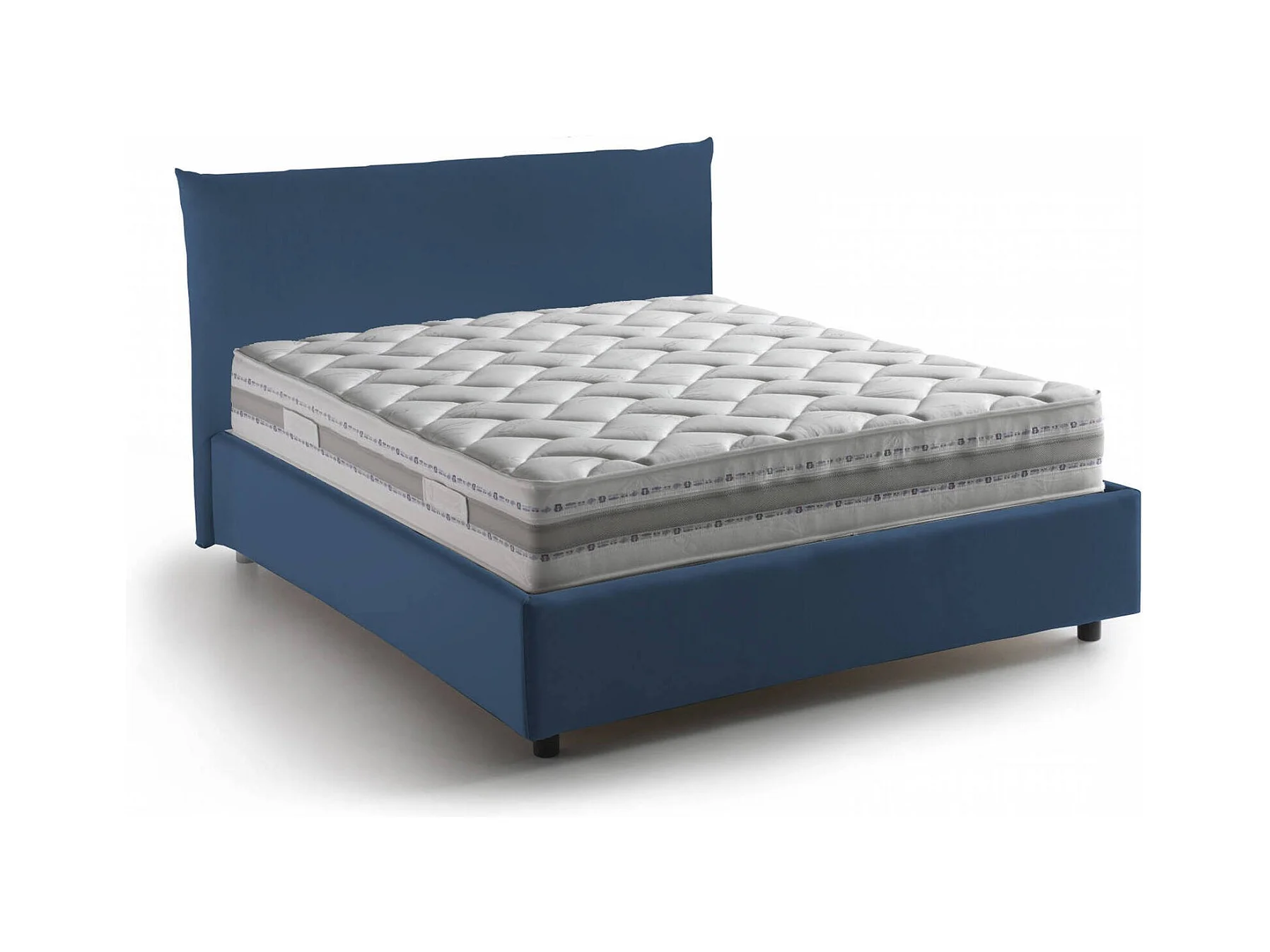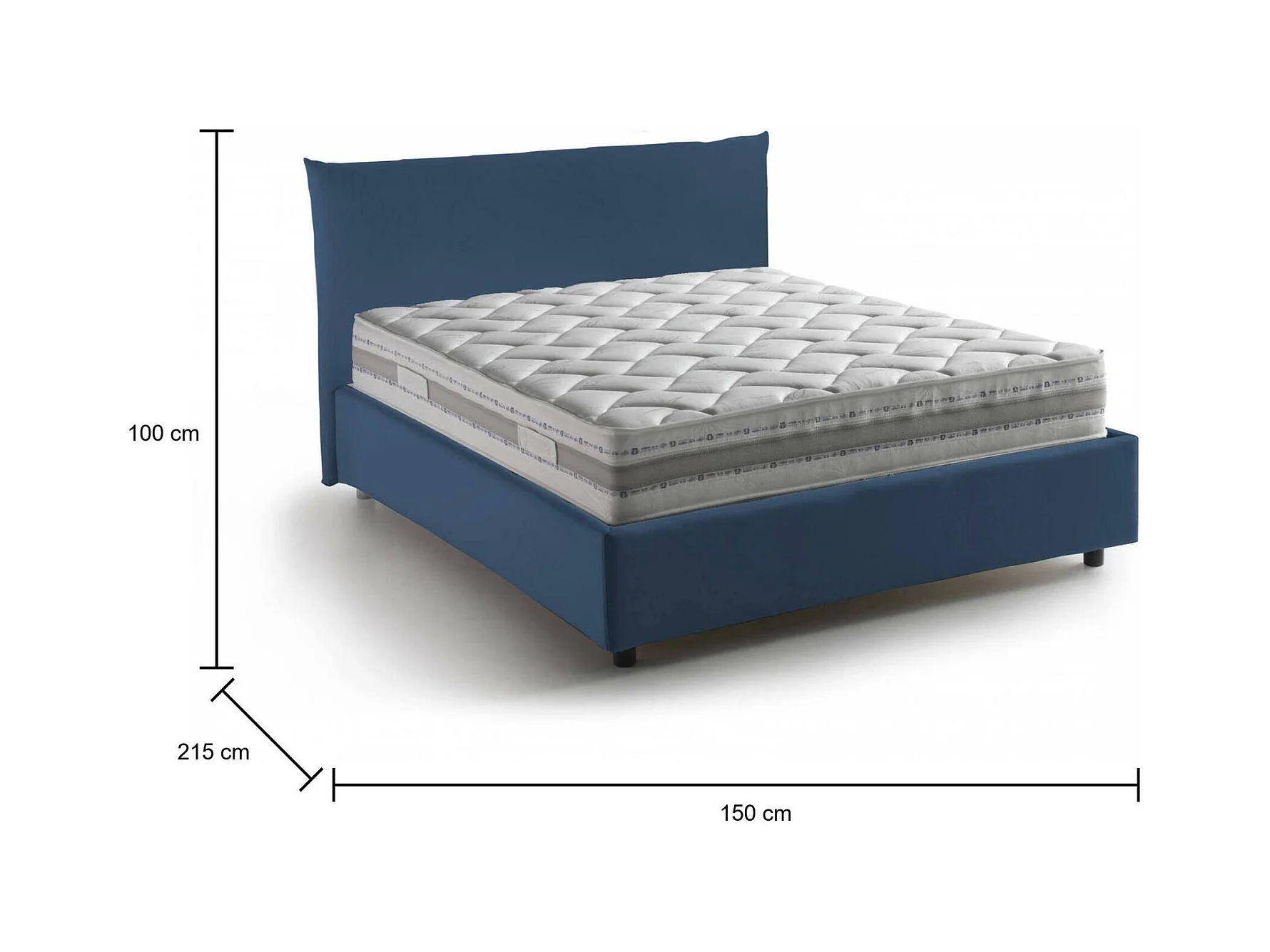 Lit double Dbranc, lit coffre avec revêtement en tissu, 100% Made in Italy, ouverture frontale, avec matelas 120x190 cm inclus, bleu