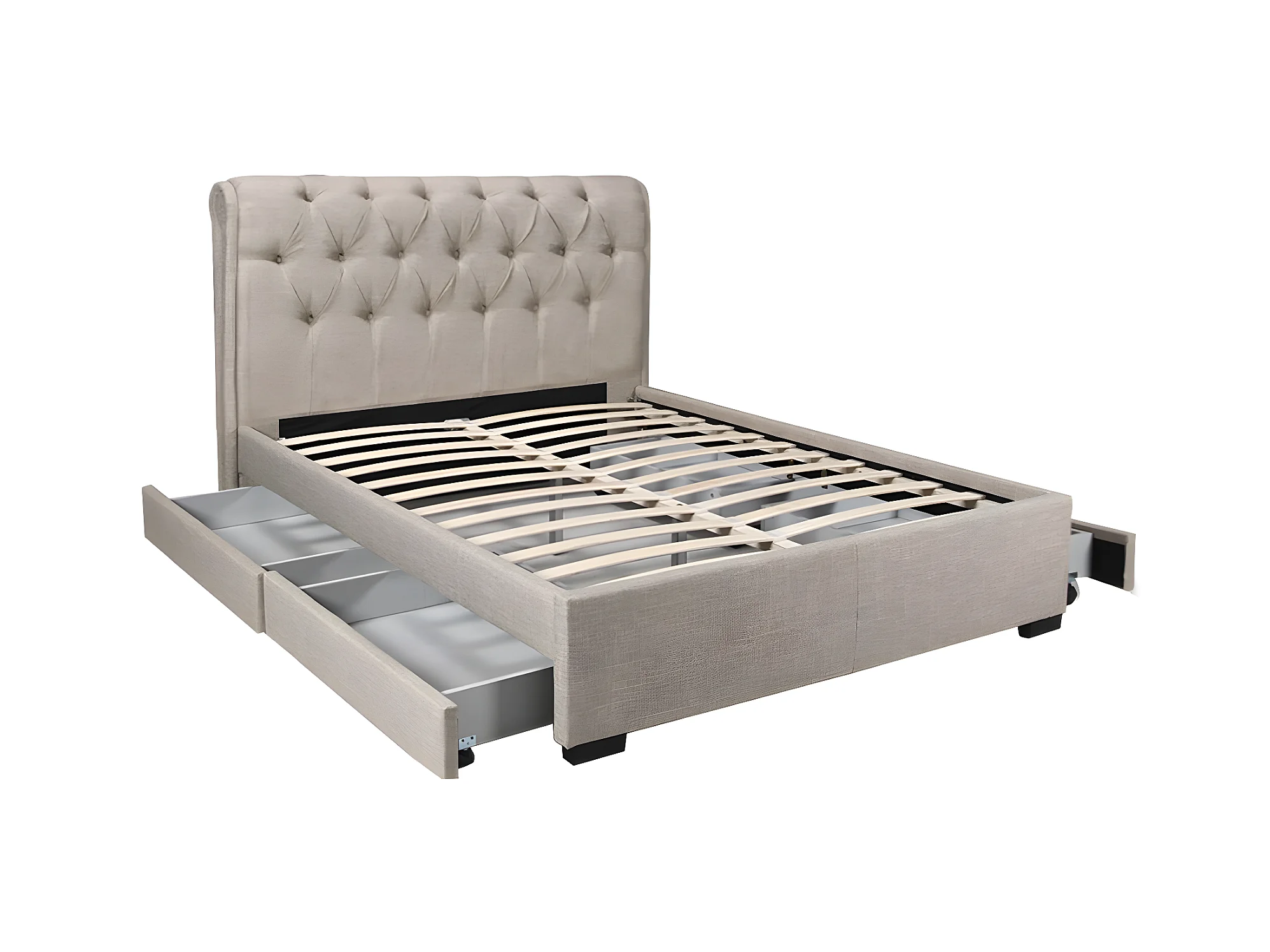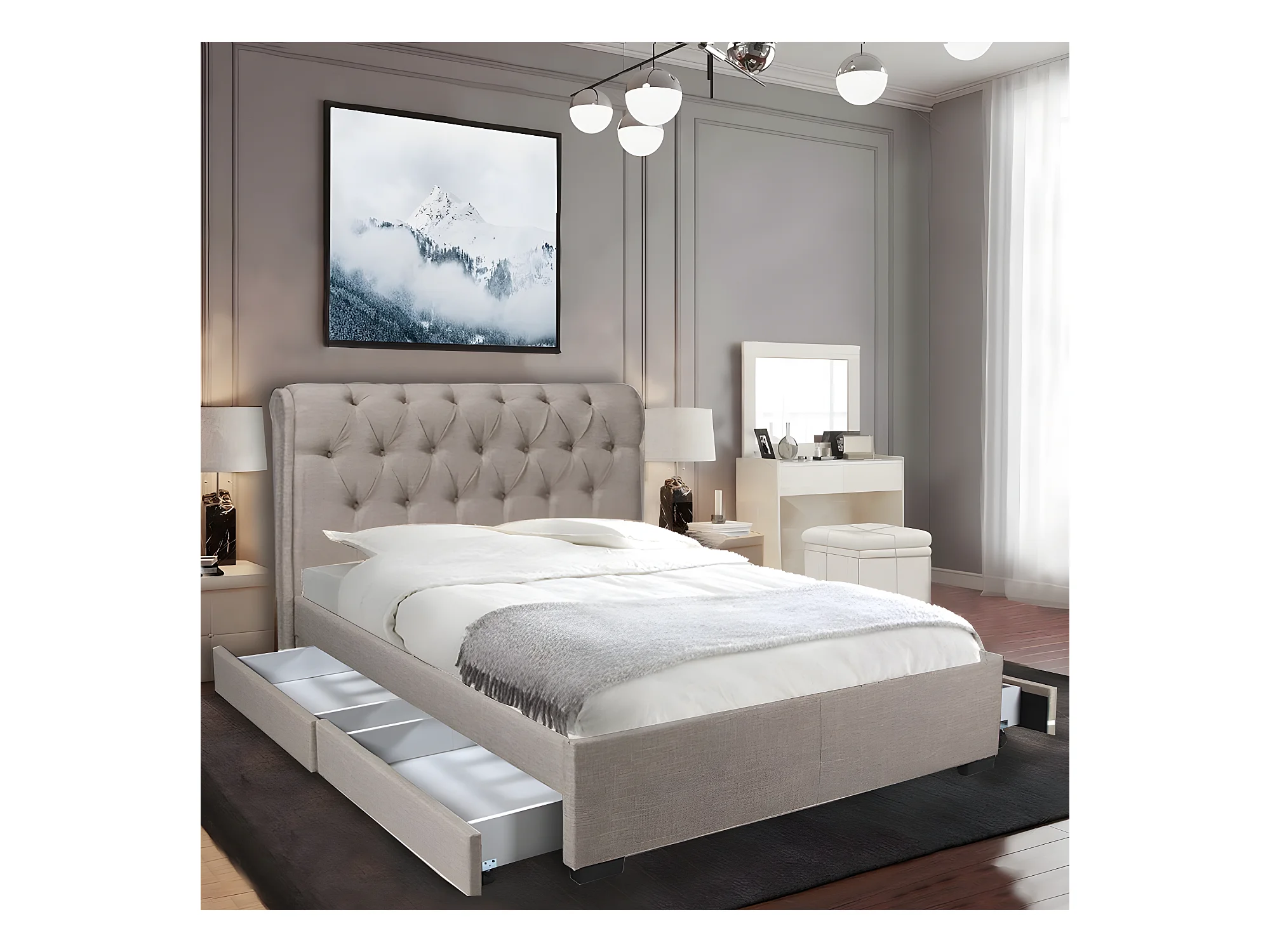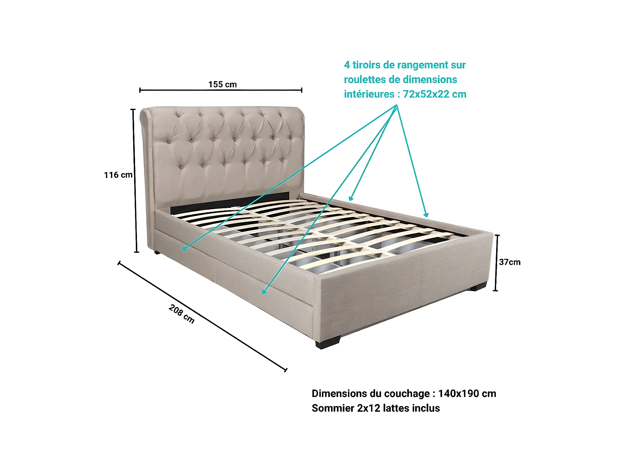 Lit CHELSEA 140x190 + 4 tiroirs + sommier / Beige