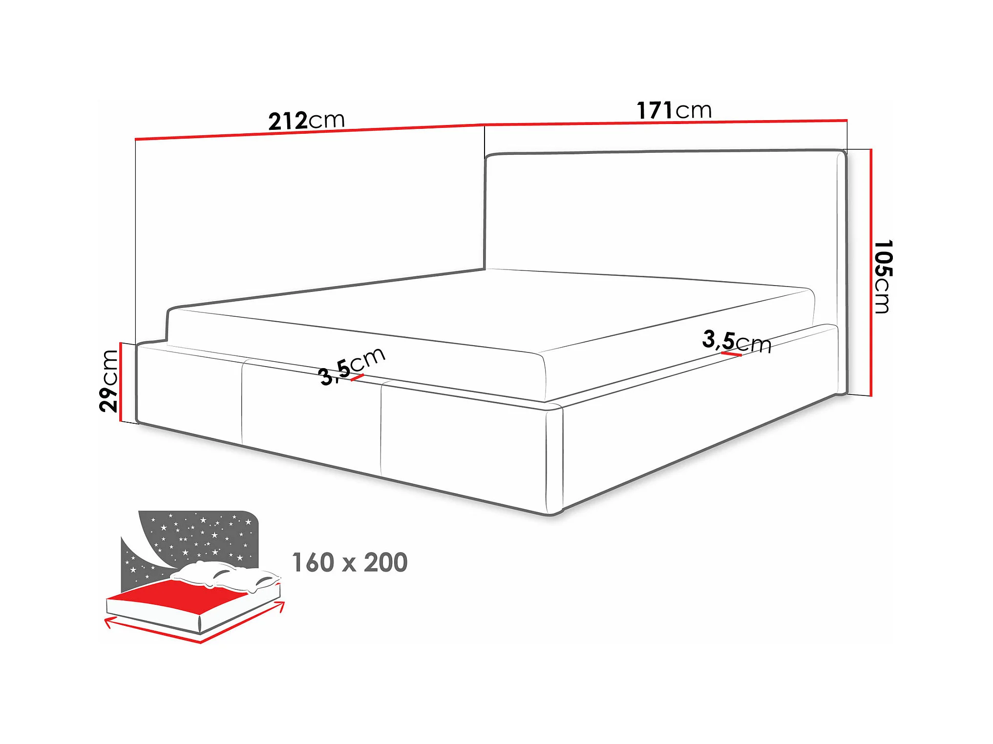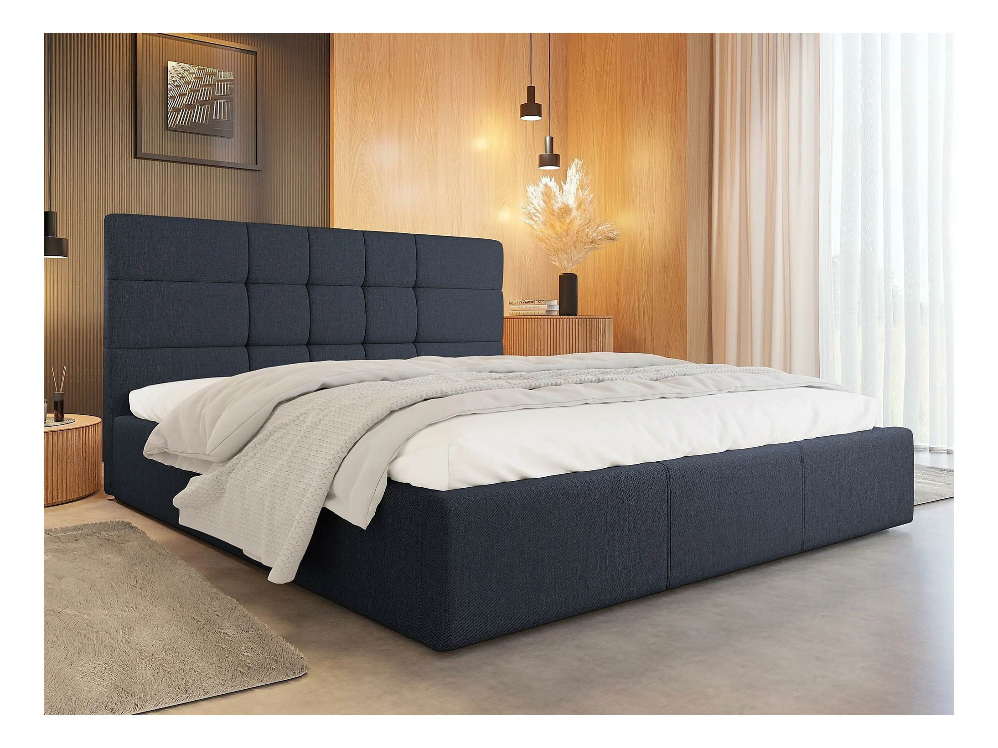 Lit ComfiDream 125, Double, Bleu, 160x200, Tapisserie, Sommier à lattes, 171x212x105cm