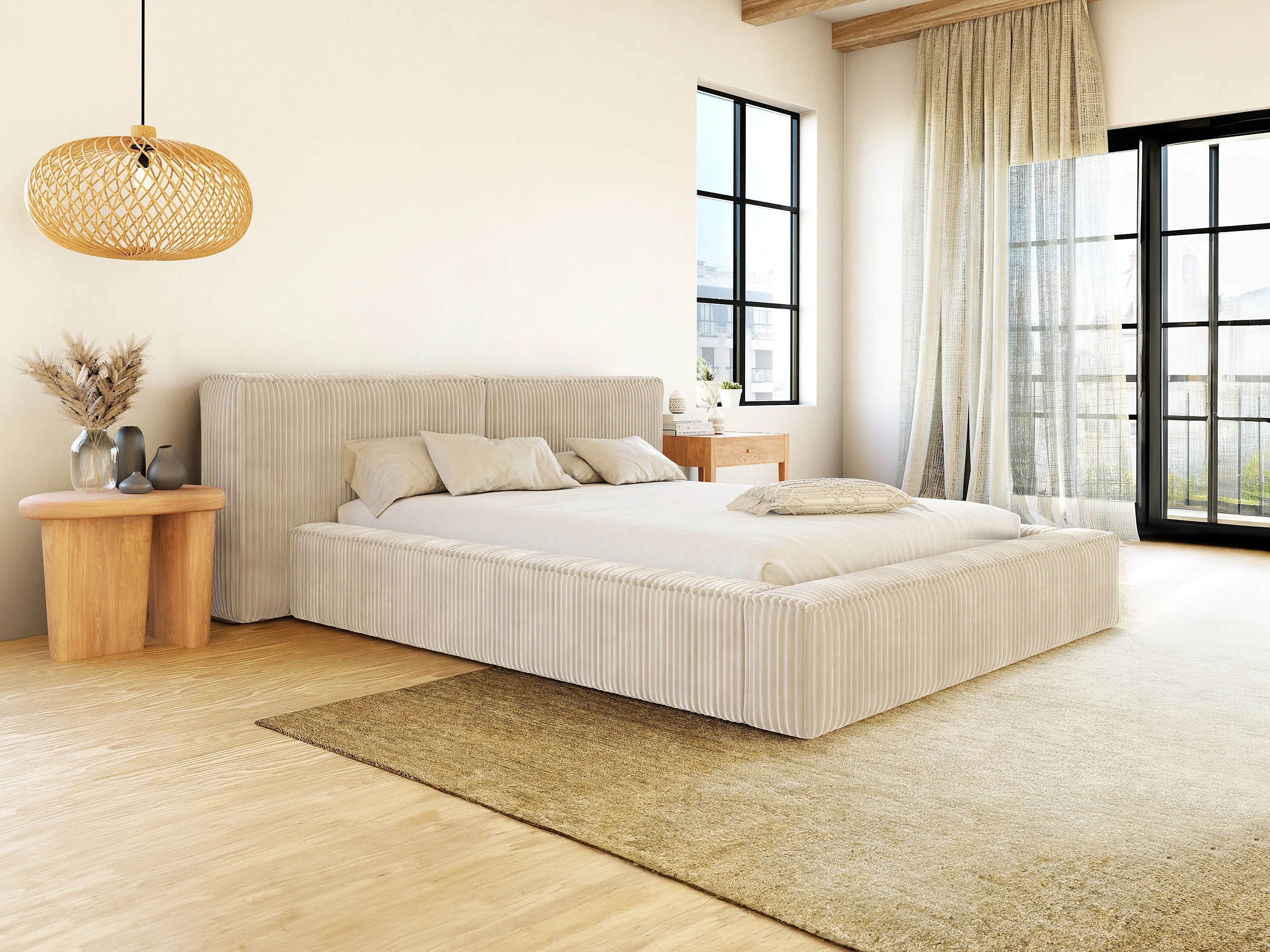 Lit coffre 140 x 190 cm - Velours côtelé grosses côtes - Beige + Matelas - TIMANO de Pascal Morabito