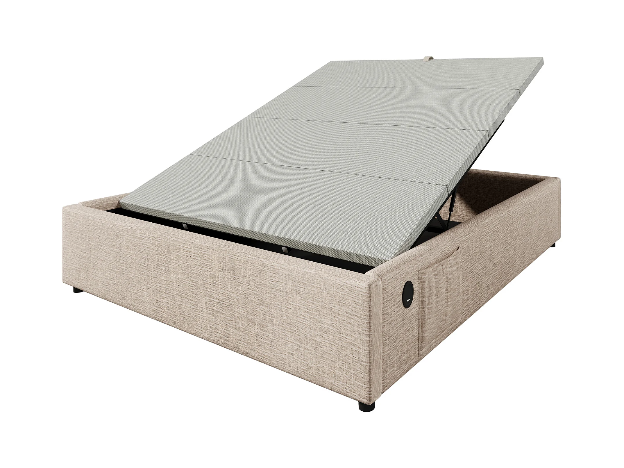 Lit coffre 140 x 200 cm - Lit enfant avec port USB et poche de rangement - lin beige - sans matelas