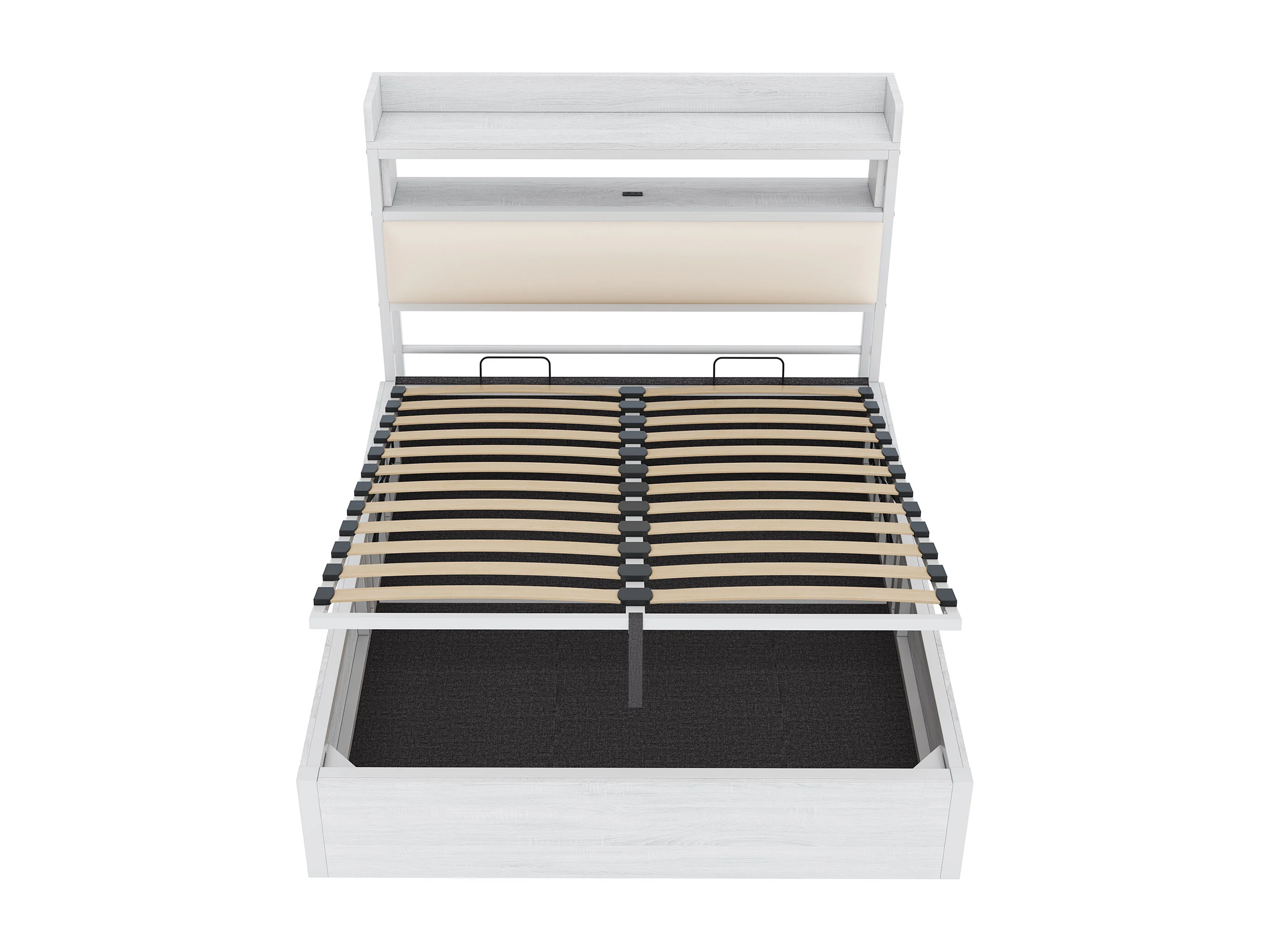Lit coffre 140 x 200 cm - Lit double avec chargement USB et tête de lit coffre - bois blanc
