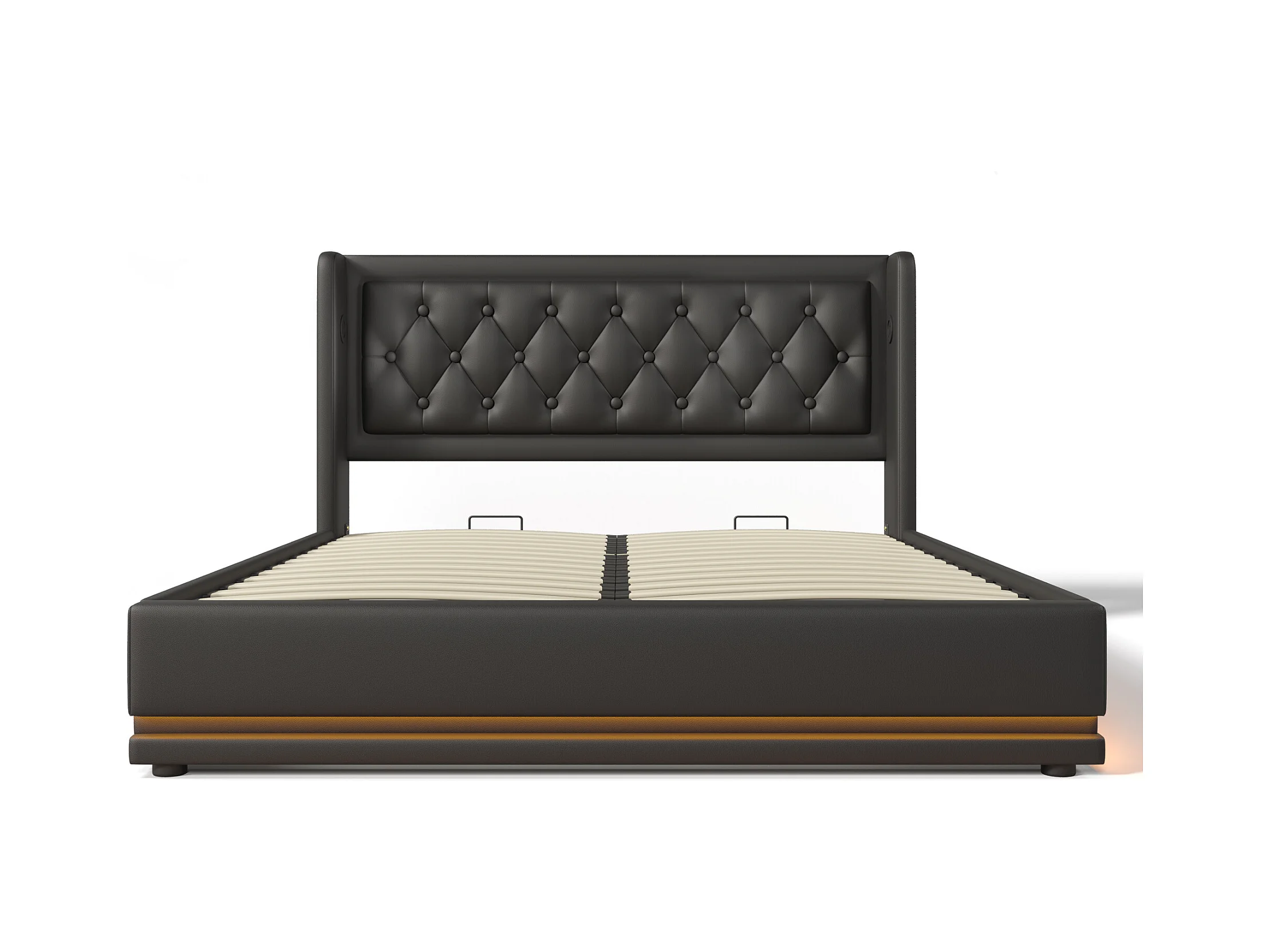 Lit coffre 140 x 200 cm - PU noir - Lit adulte avec éclairage LED et recharge USB - sans matelas