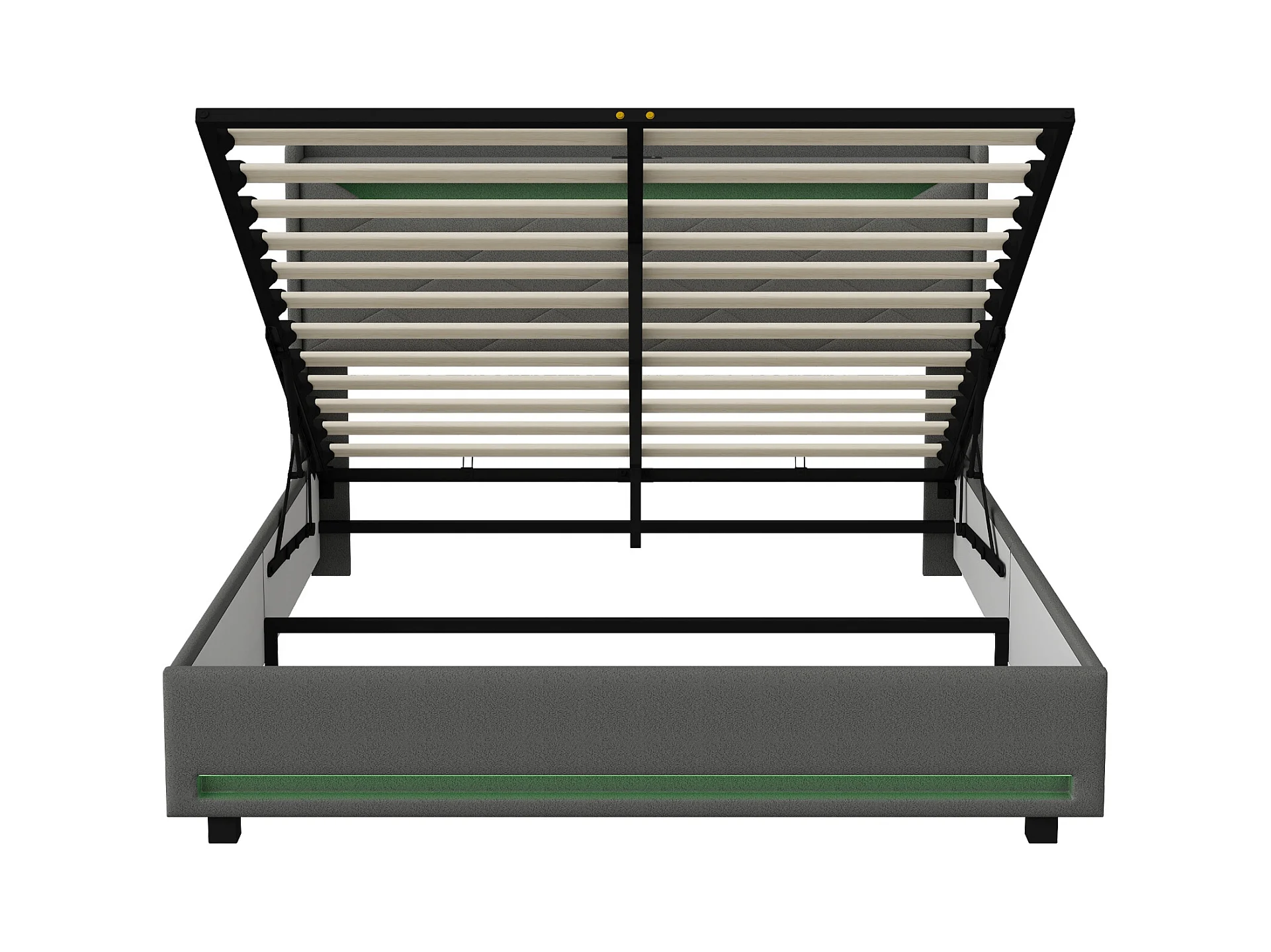 Lit coffre 140x190 avec LED - lit 140x190 avec port USB et Type C - cadre de lit adulte 140x190 cm avec sommier à lattes - tissu en lin - gris