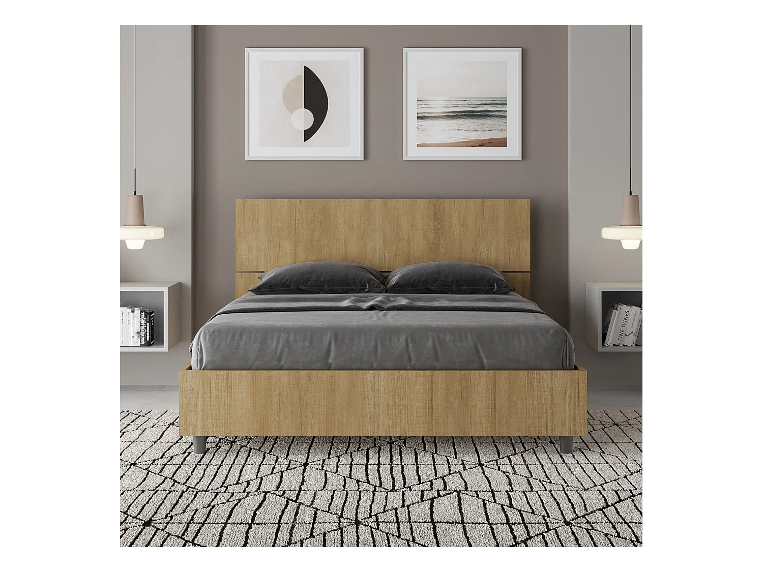 Lit coffre 140x190 tête de lit inclinée chêne nature Demas