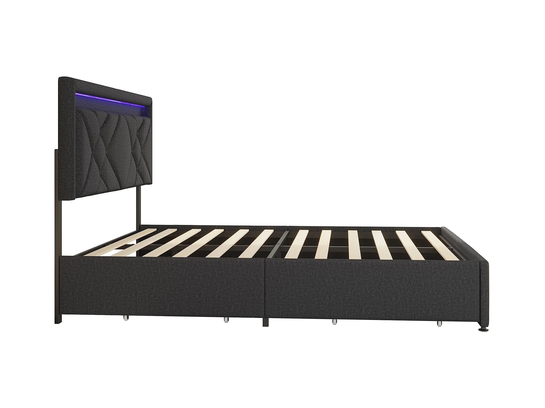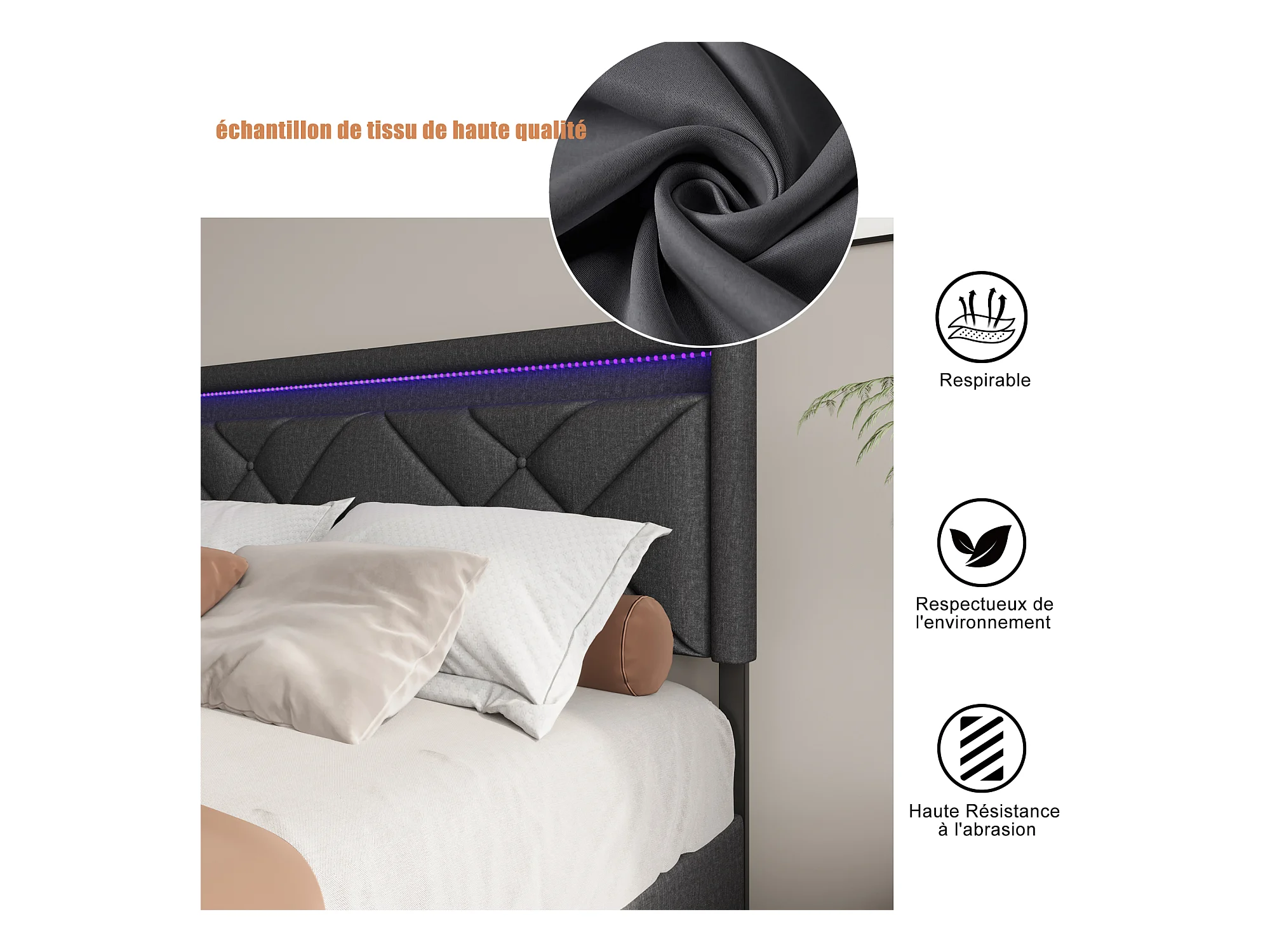 Lit Coffre 140x200 Avec USB Et Type C, Lit Capitonné Avec Sommier à Lattes Et 4 Tiroirs, Lit Double