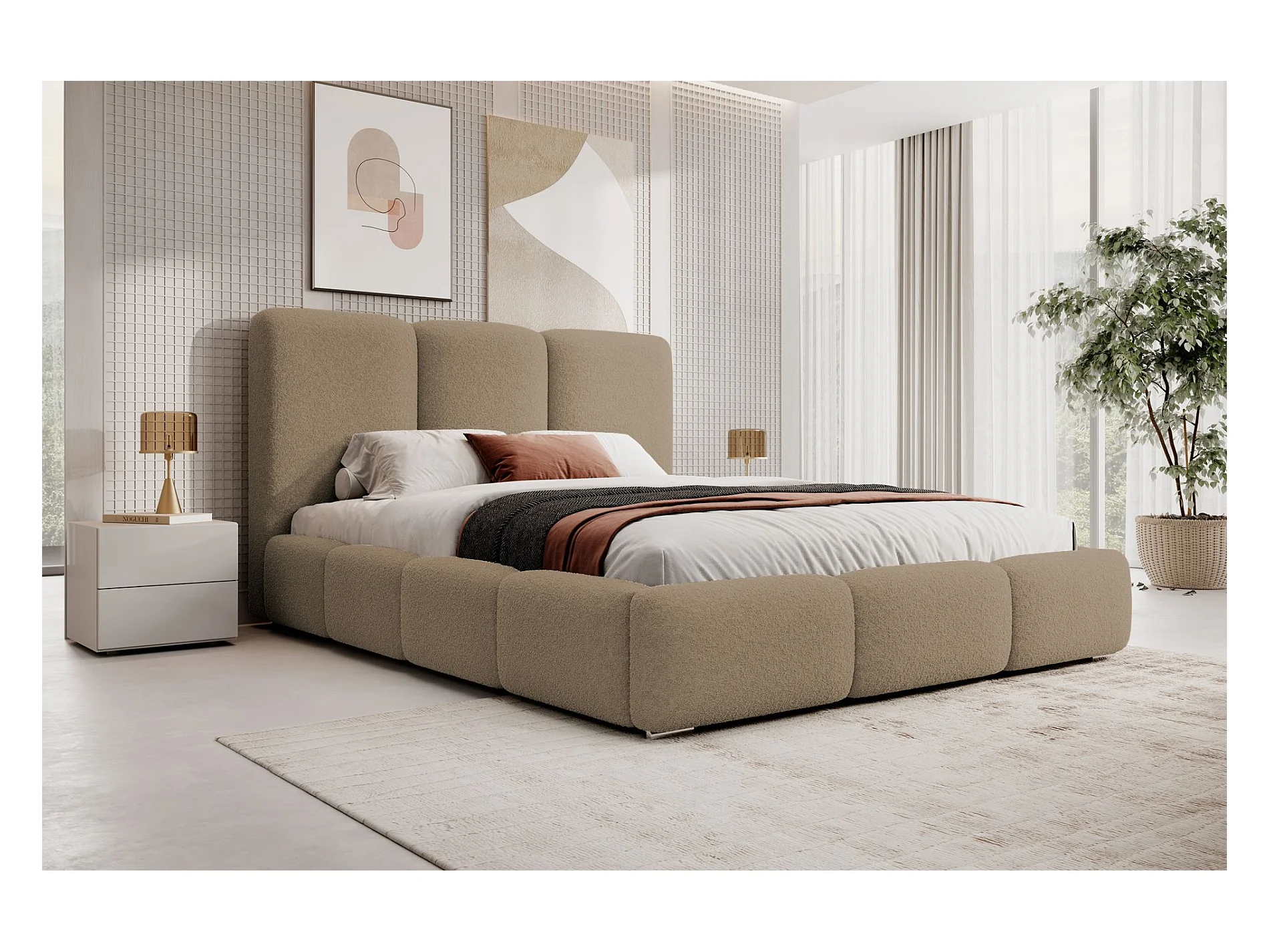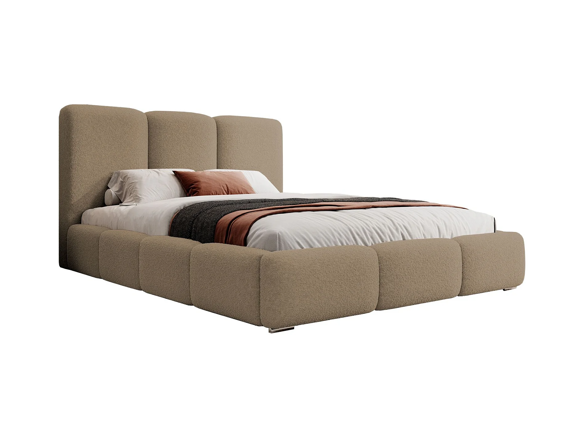 Lit coffre - 140x200 cm - en bouclette marron clair - BAURO