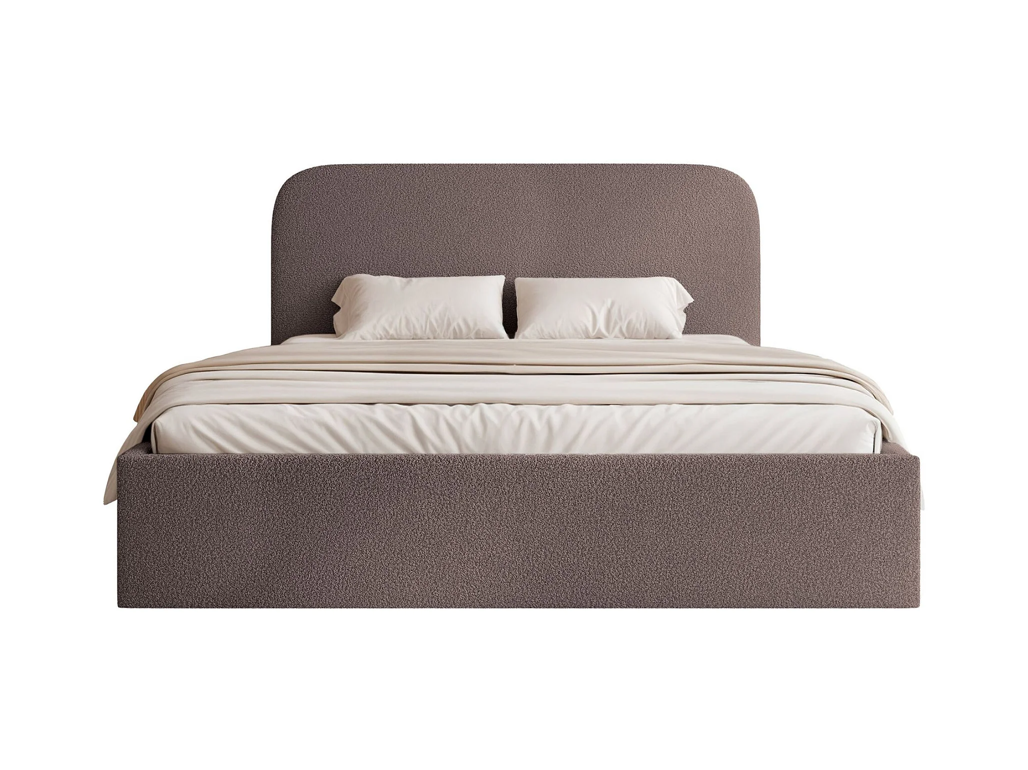 Lit coffre - 140x200 cm - en tissu bouclette brun - SONVIVO