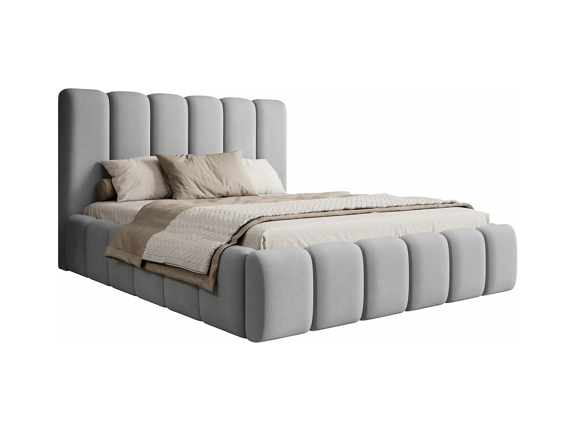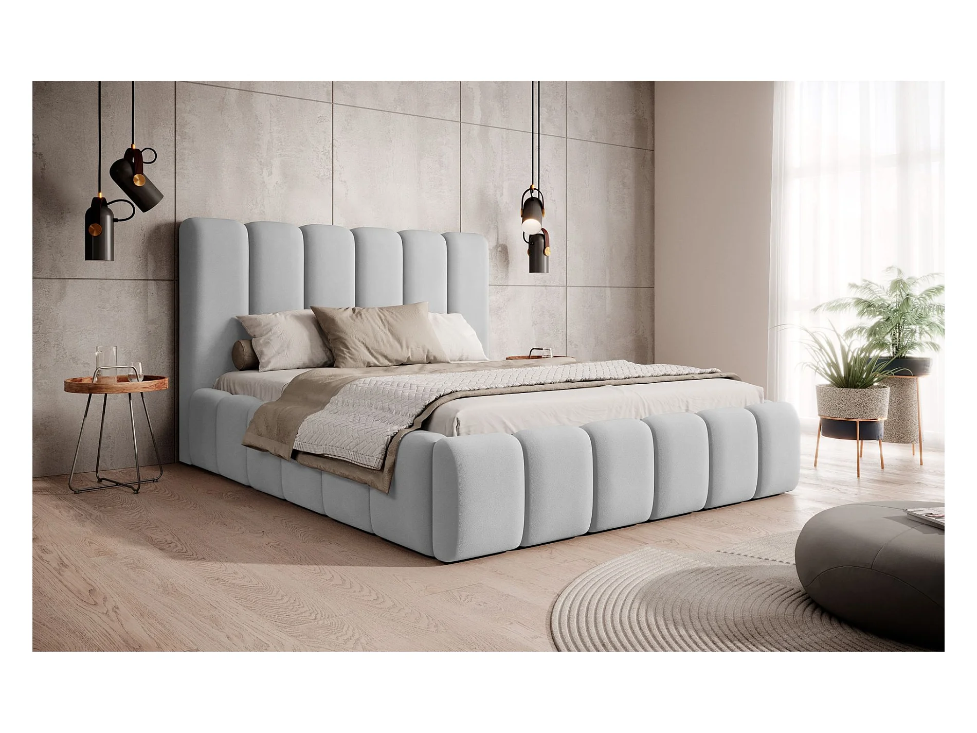 Lit coffre - 140x200 cm - en tissu velours gris clair - BISCOTTINO