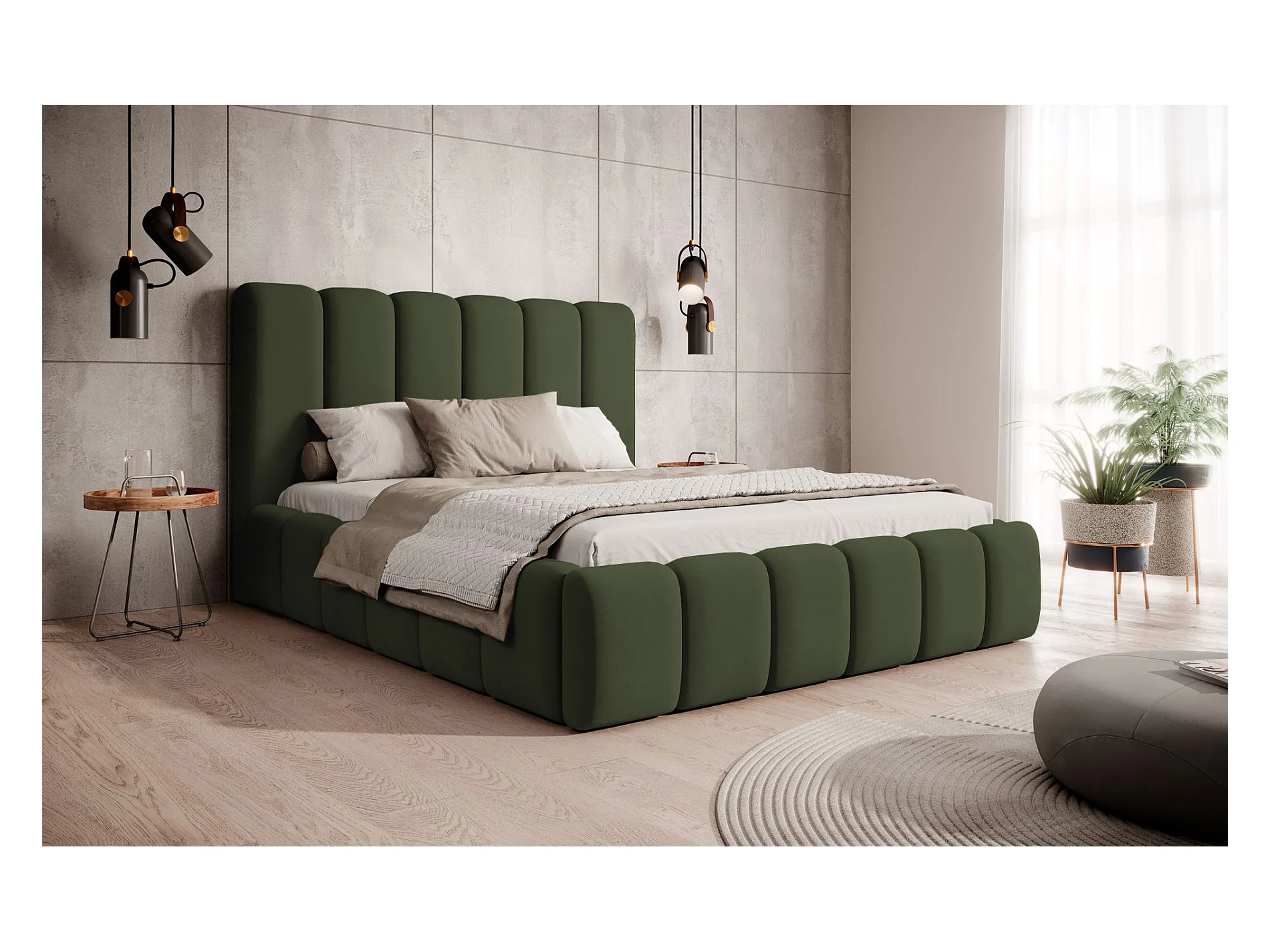 Lit coffre - 140x200 cm - en tissu velours vert - BISCOTTINO