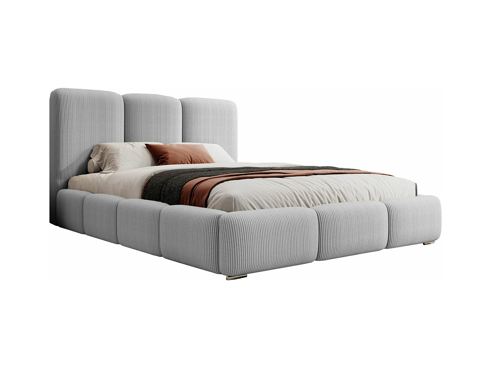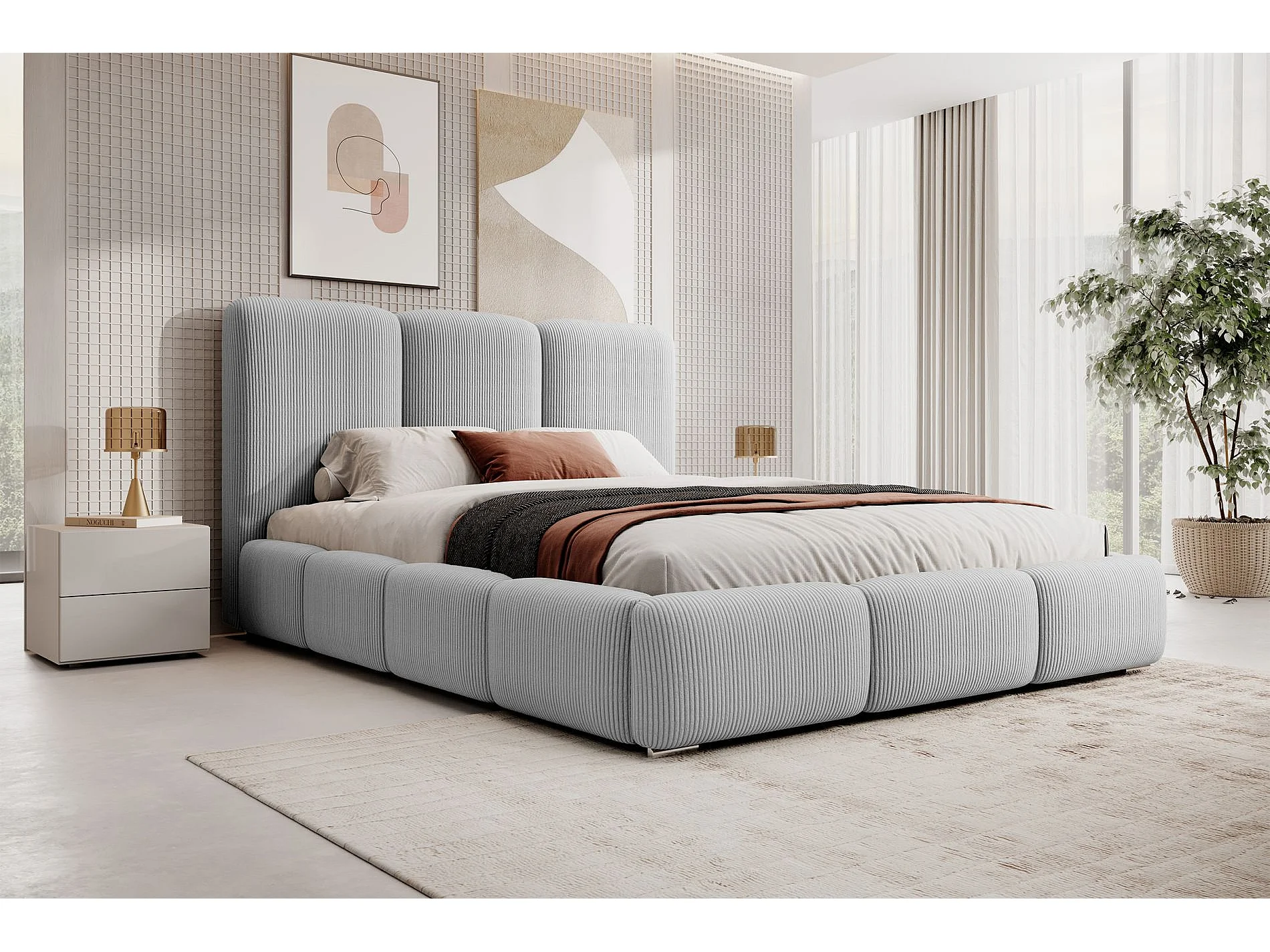 Lit coffre - 140x200 cm - en velours côtelé gris clair - BAURO