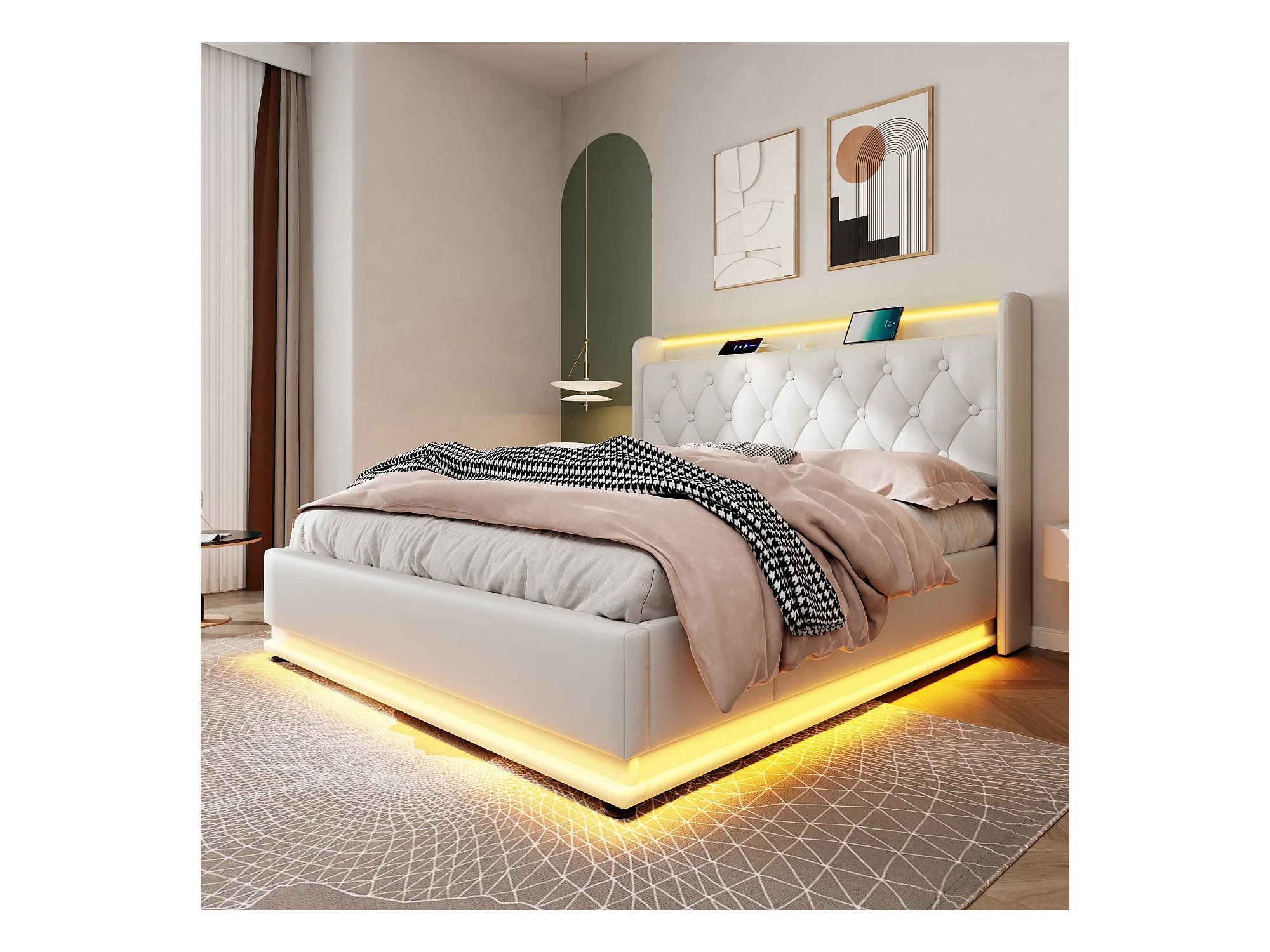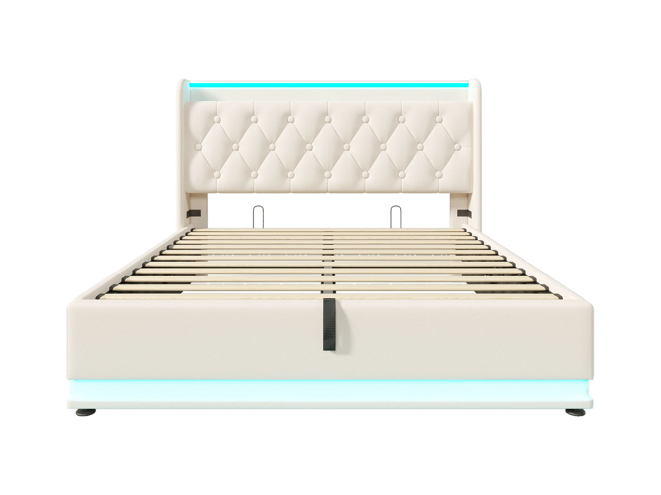 Lit coffre 140x200 cm - Lit adulte avec chargement USB et éclairage LED - PU blanc - sans matelas