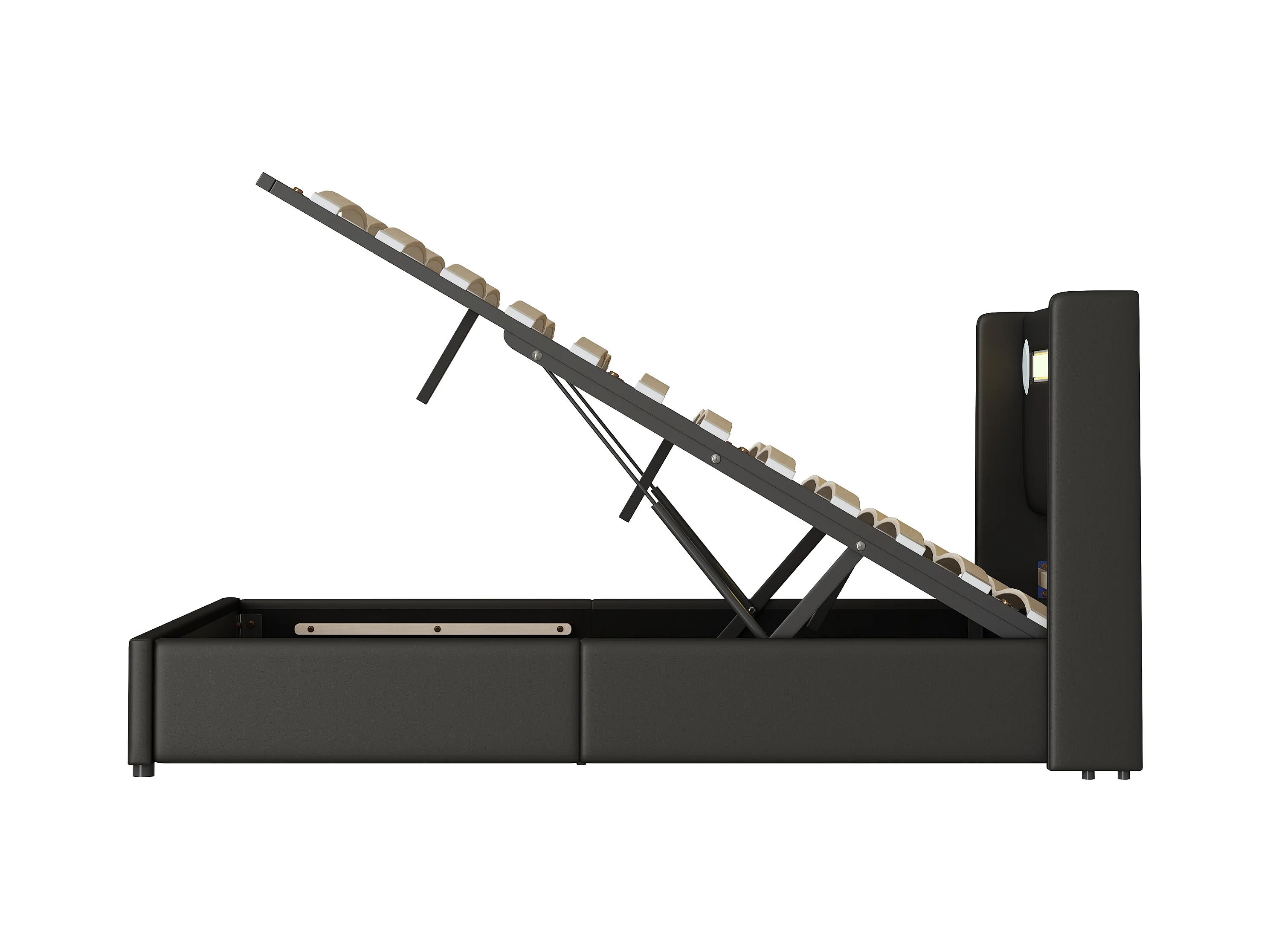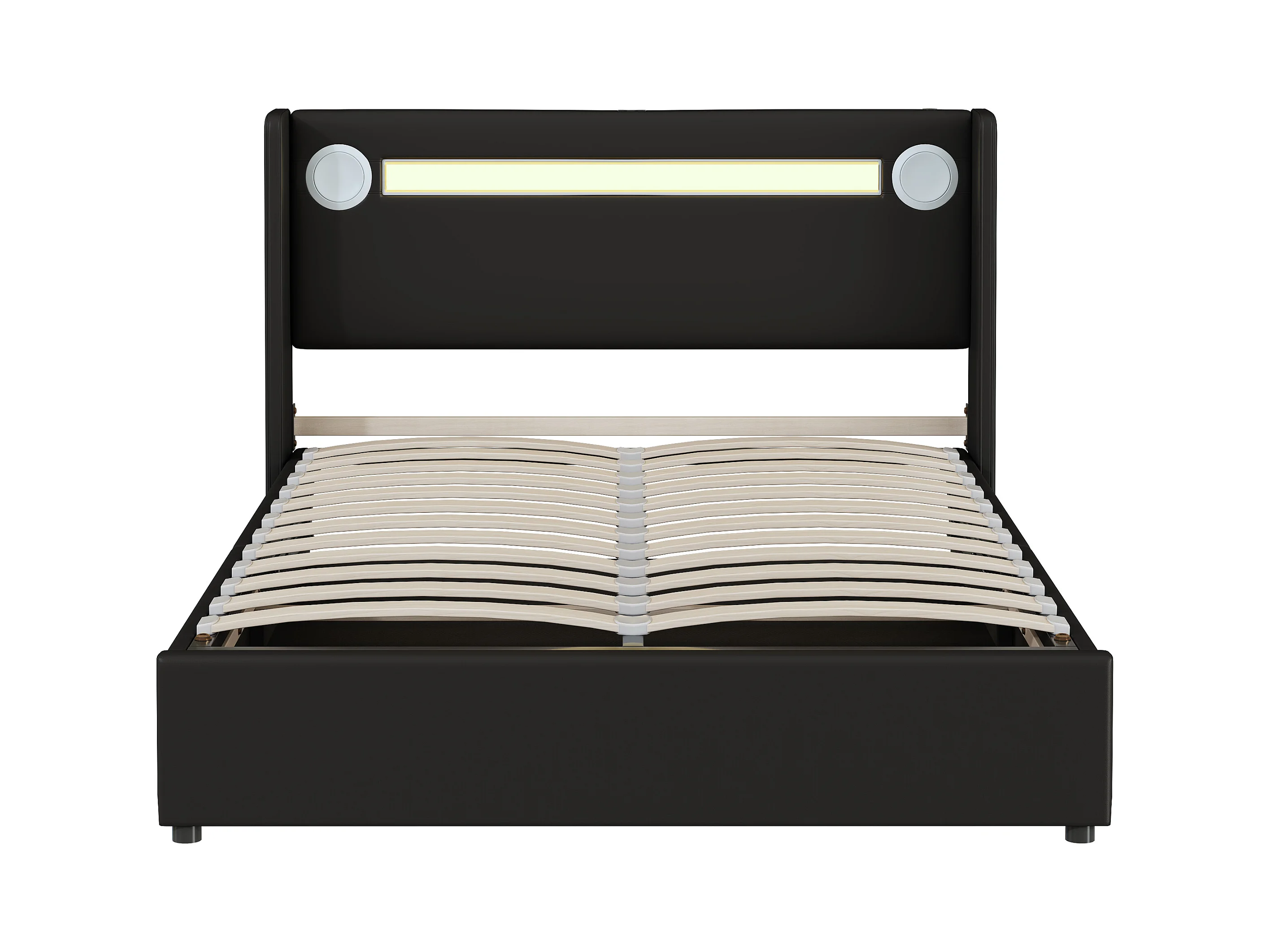 Lit coffre 140x200 cm - Lit adulte avec USB, lumière LED et lecteur Bluetooth - PU noir - sans matelas
