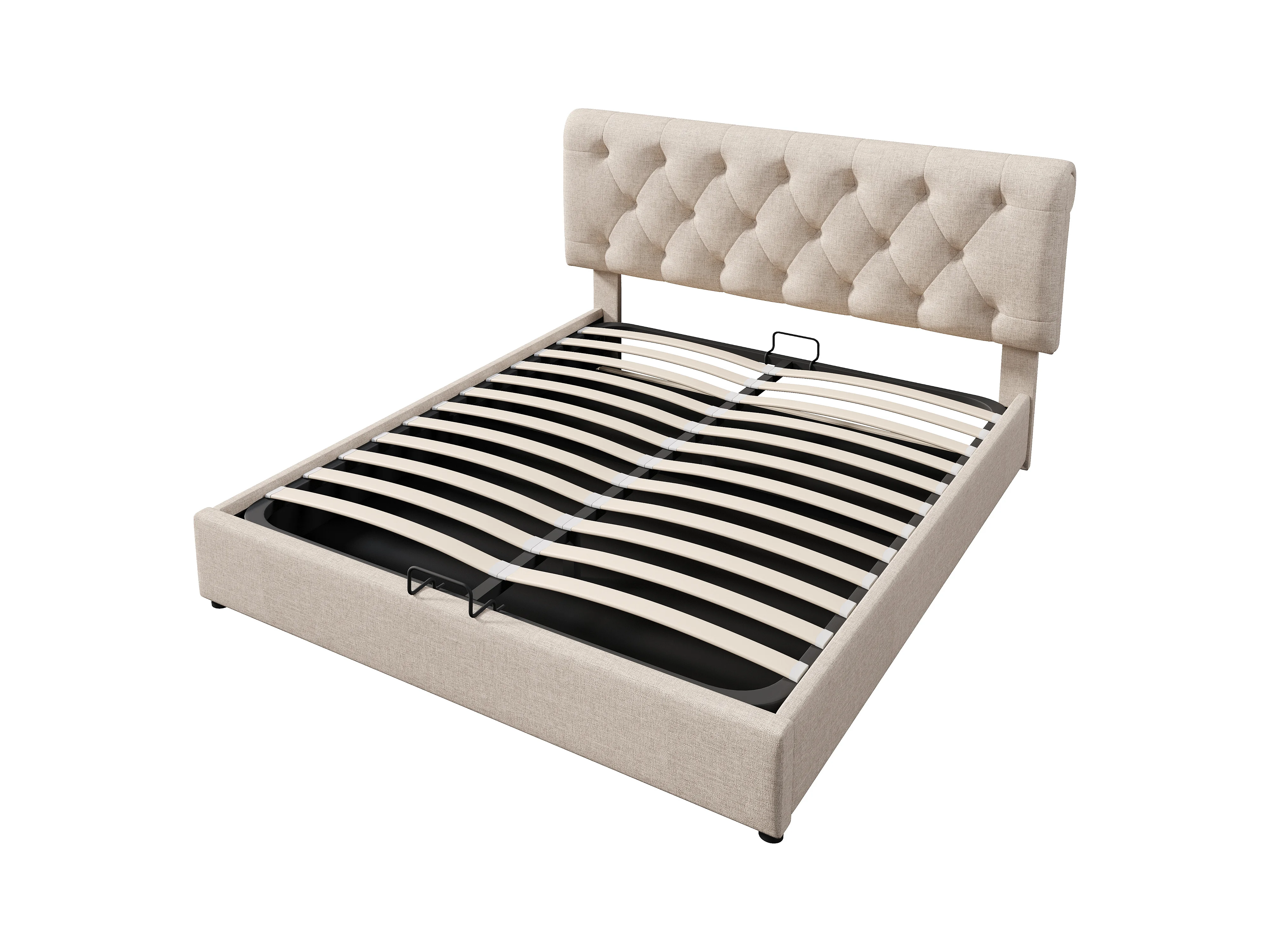 Lit coffre 140x200 cm - lit double avec tête de lit réglable - structure métal - lin - coloris naturel - sans matelas