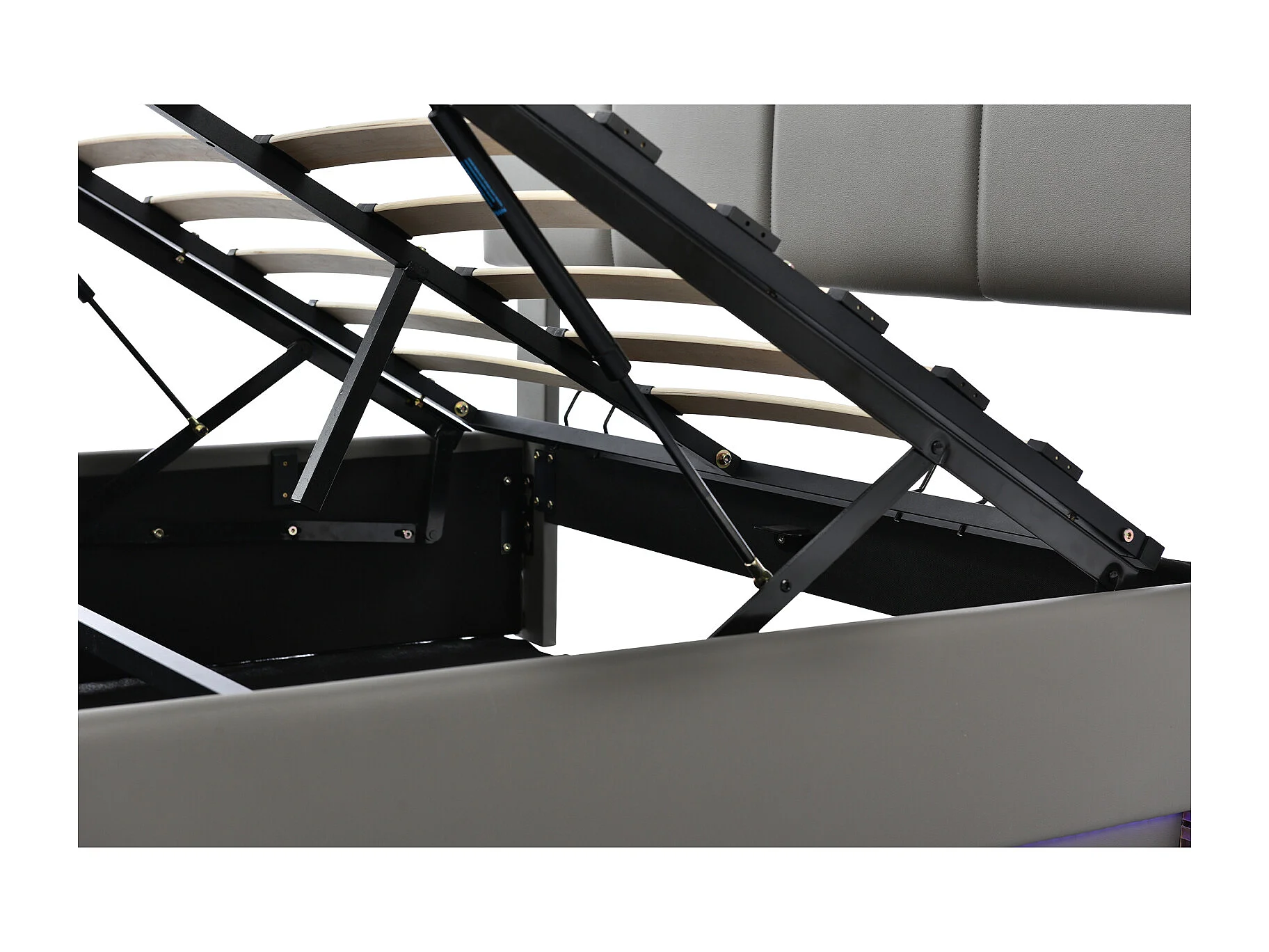 Lit coffre 140x200 cm - Lit doub LED capitonné relevable hydraulique avec sommier à lattes, tête de lit, simili cuir PU - Gris