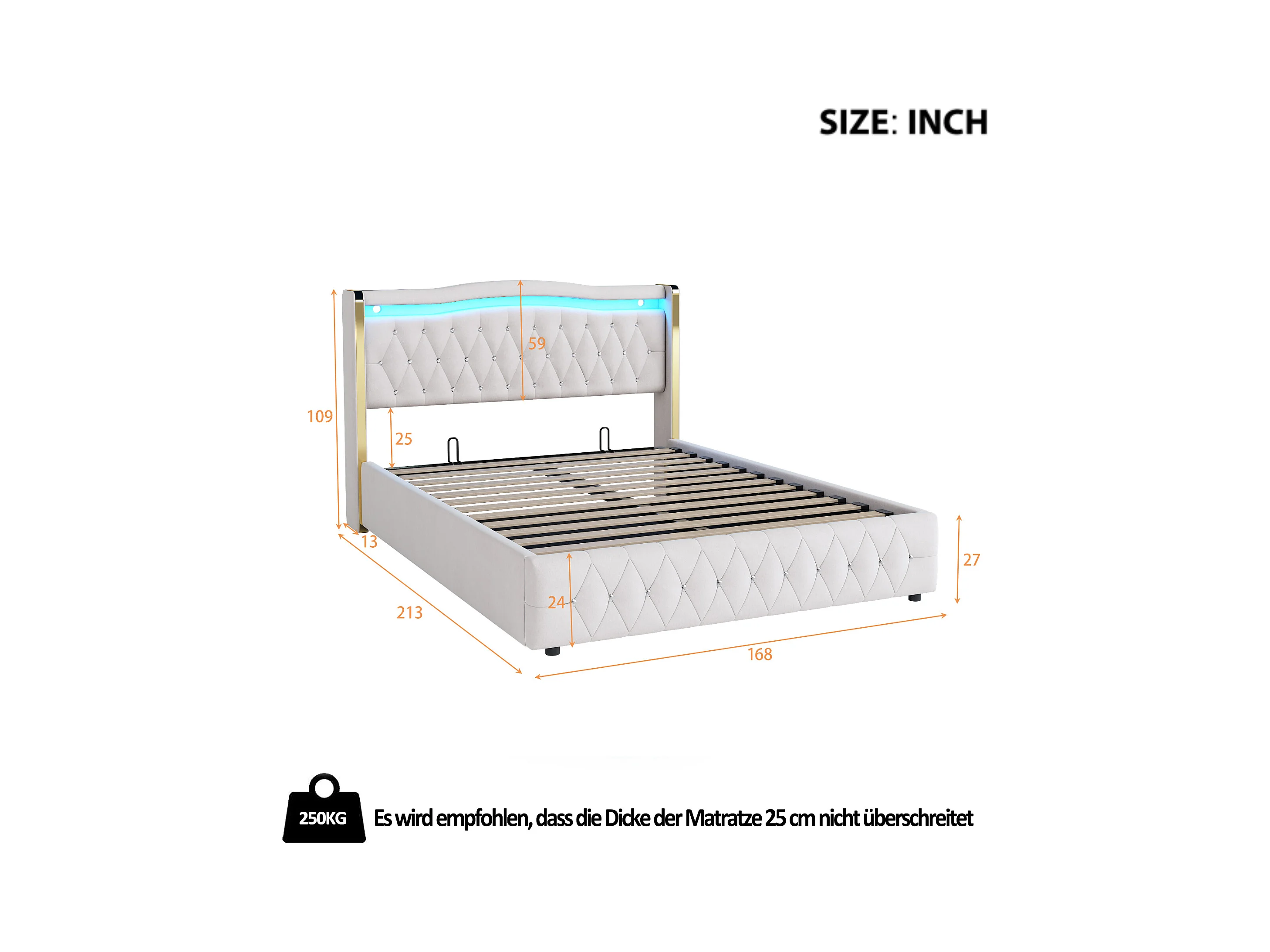 Lit coffre 160 x 200 cm - Lit adulte avec lumières LED et décoration diamant - velours beige - sans matelas