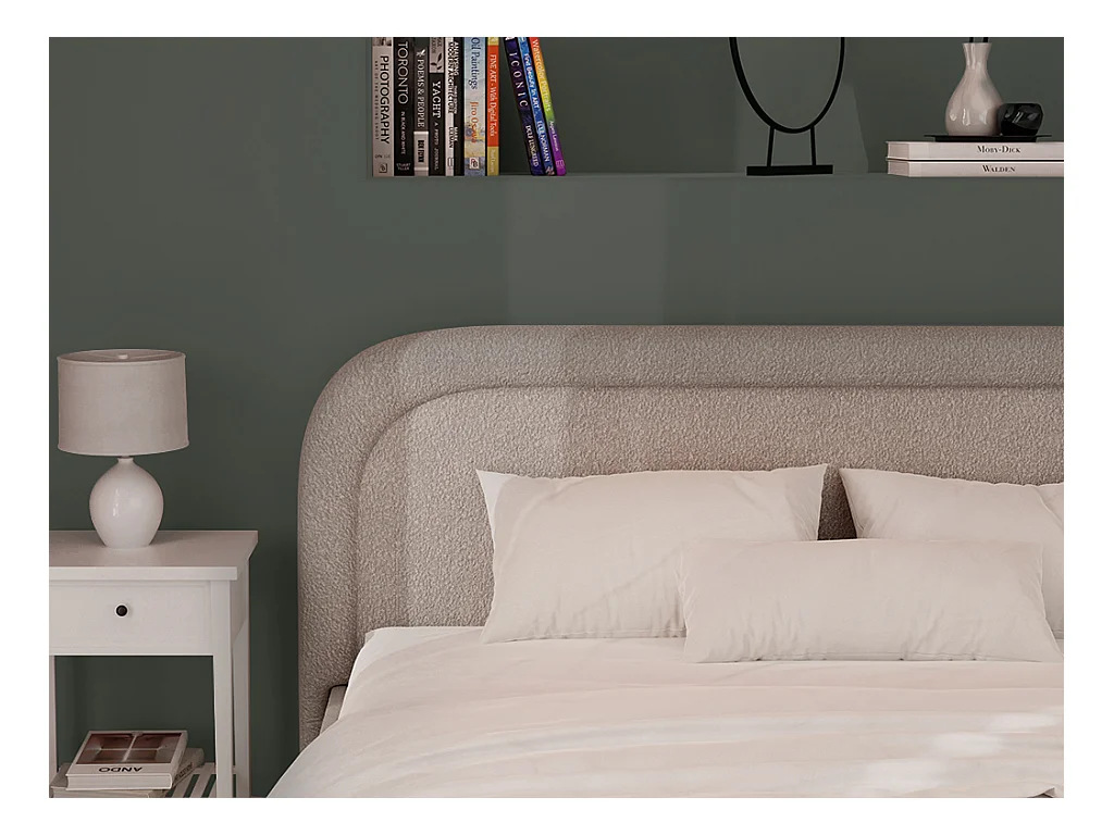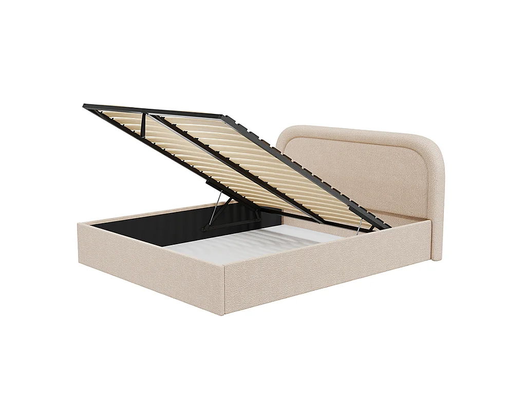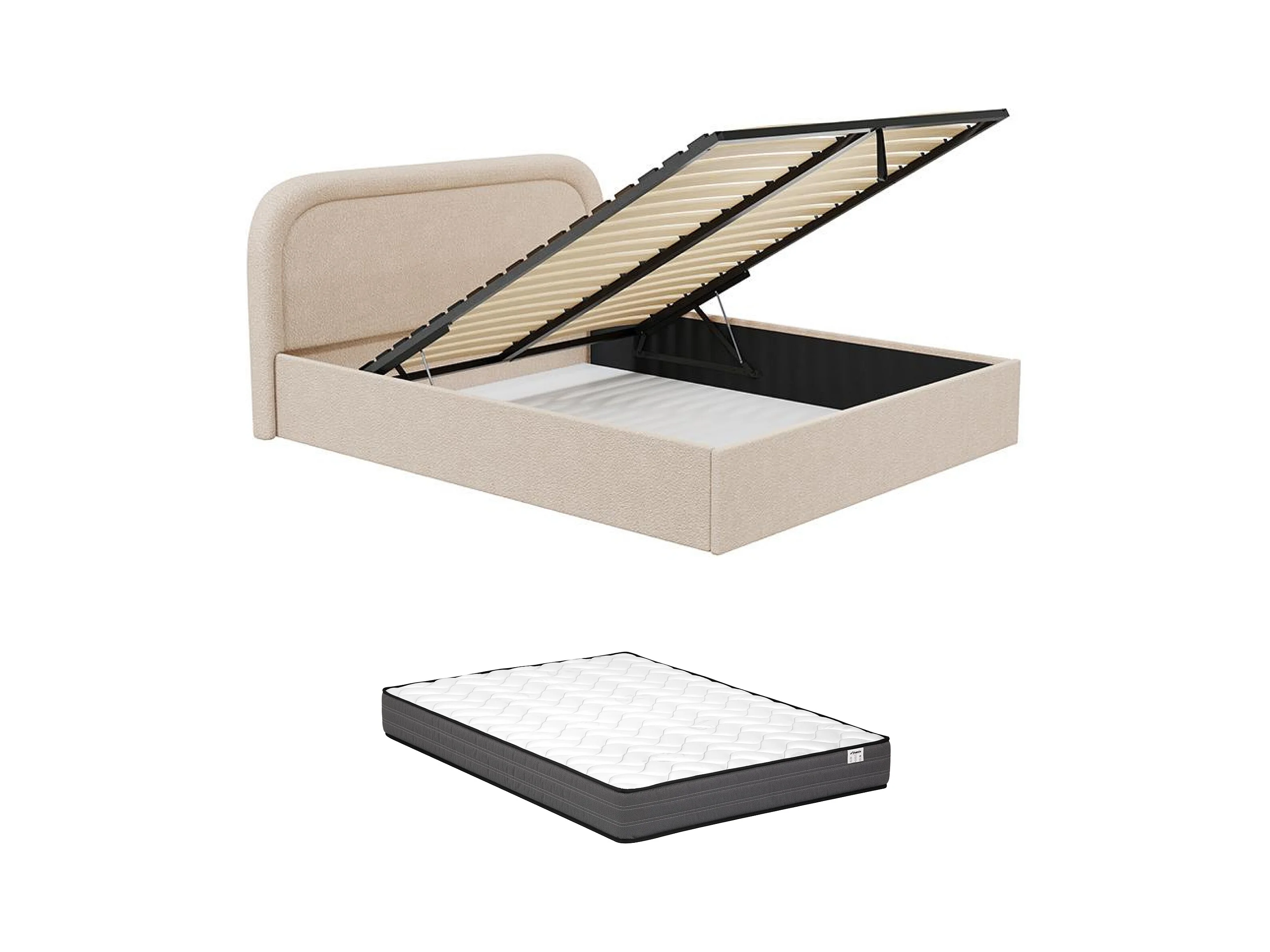 Lit coffre 160 x 200 cm - Tissu bouclette - Beige + Matelas - FIREZA