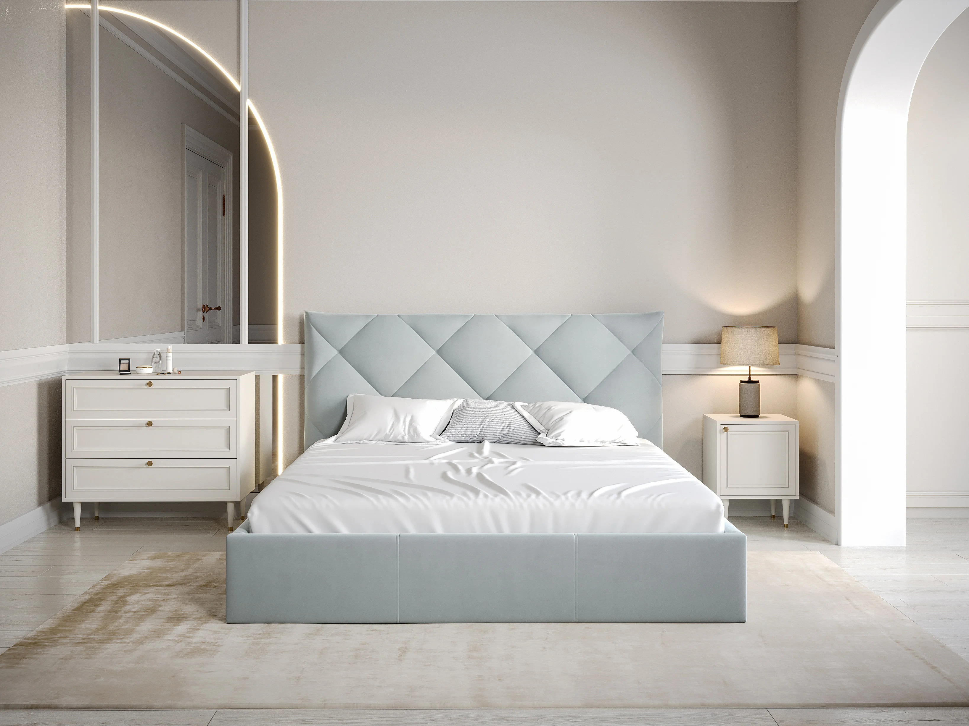 Lit coffre 160 x 200 cm - Velours - Gris clair - STARI de Pascal Morabito