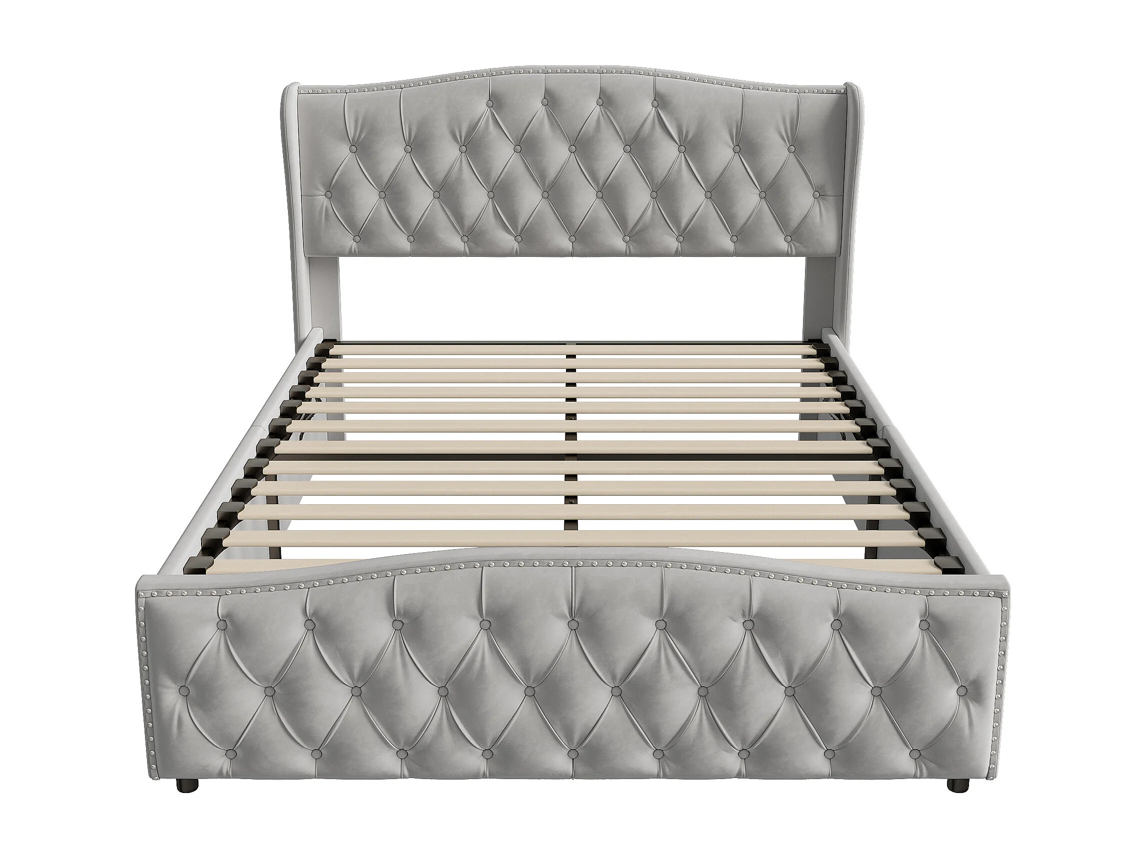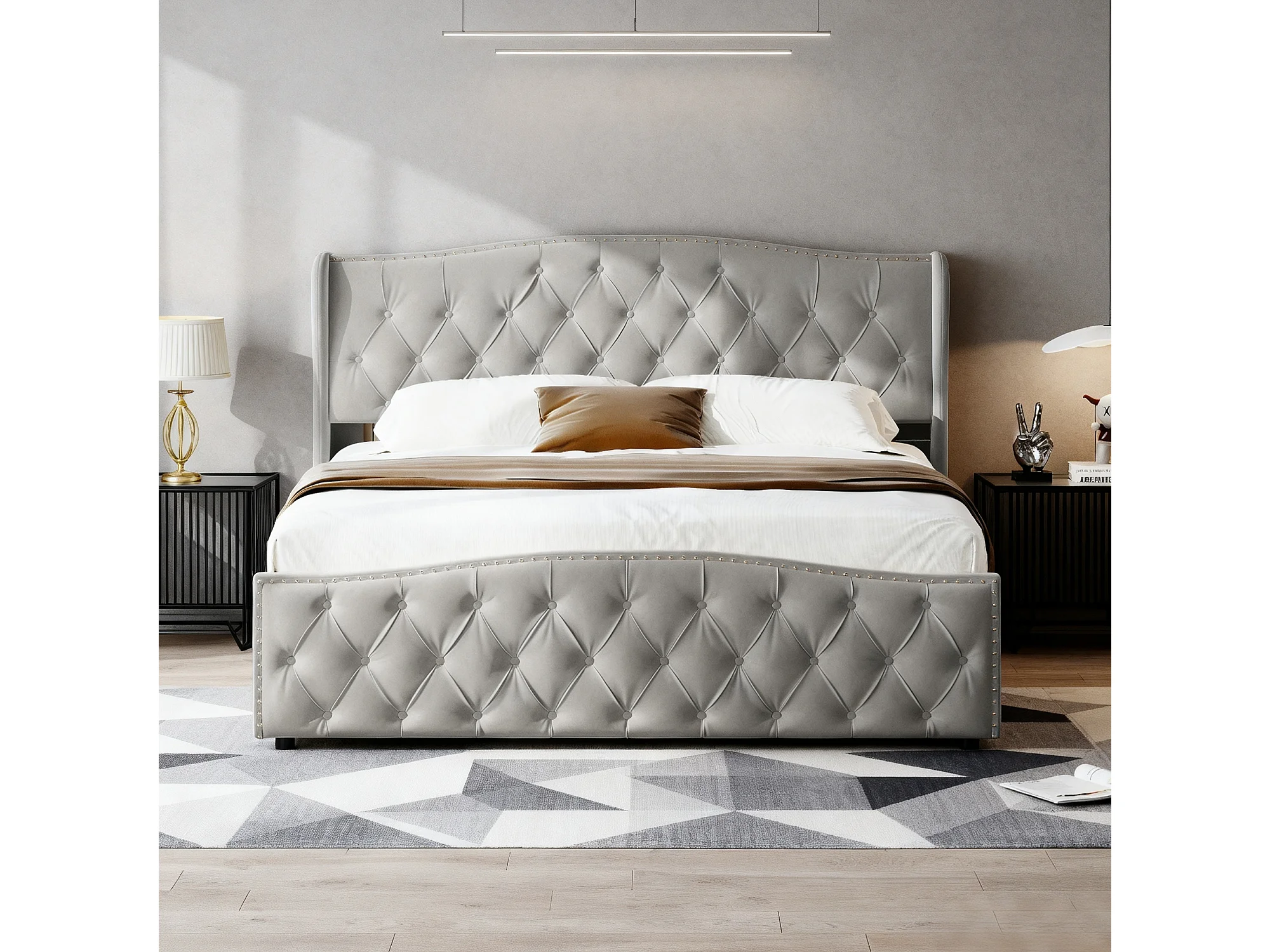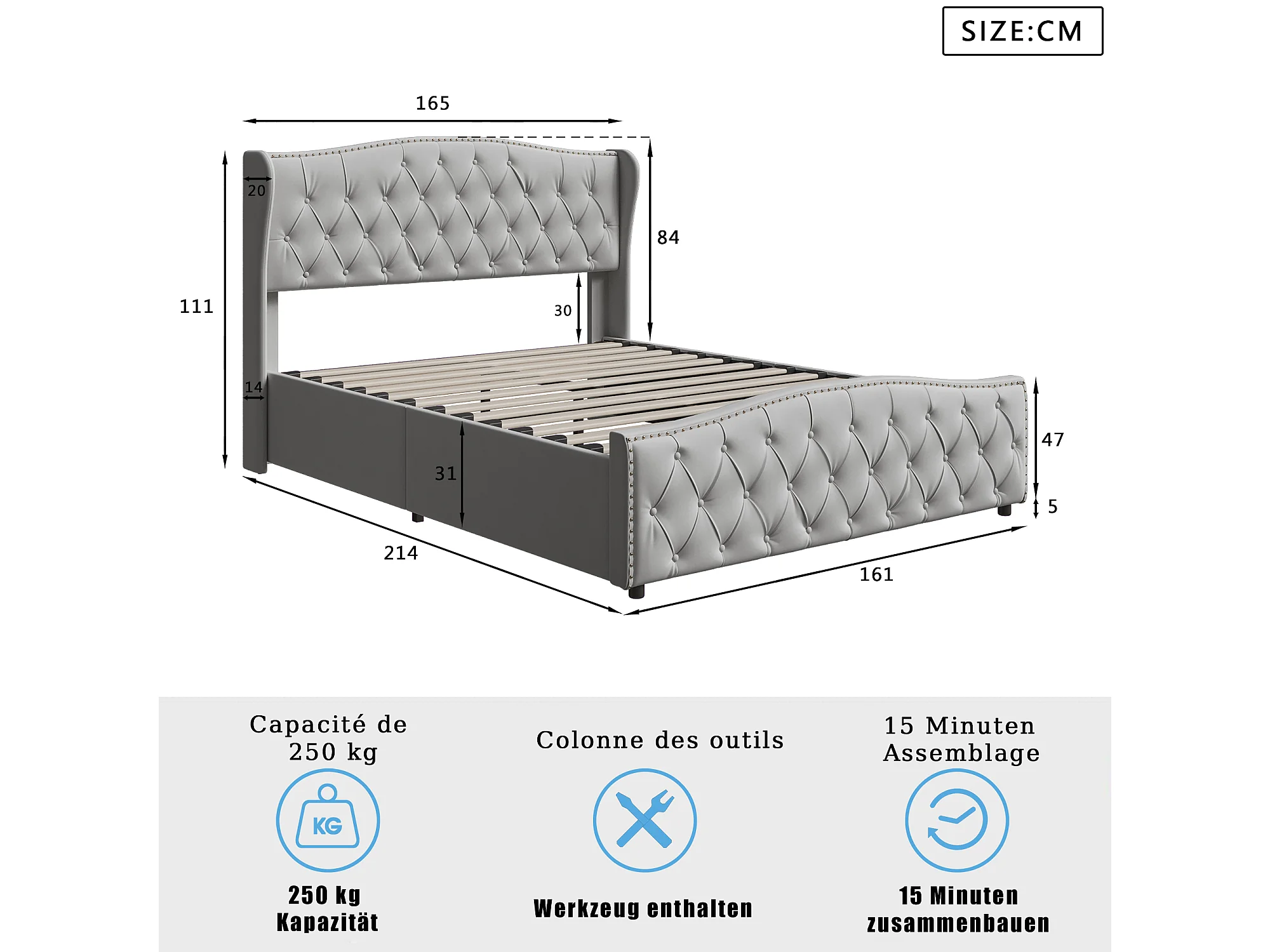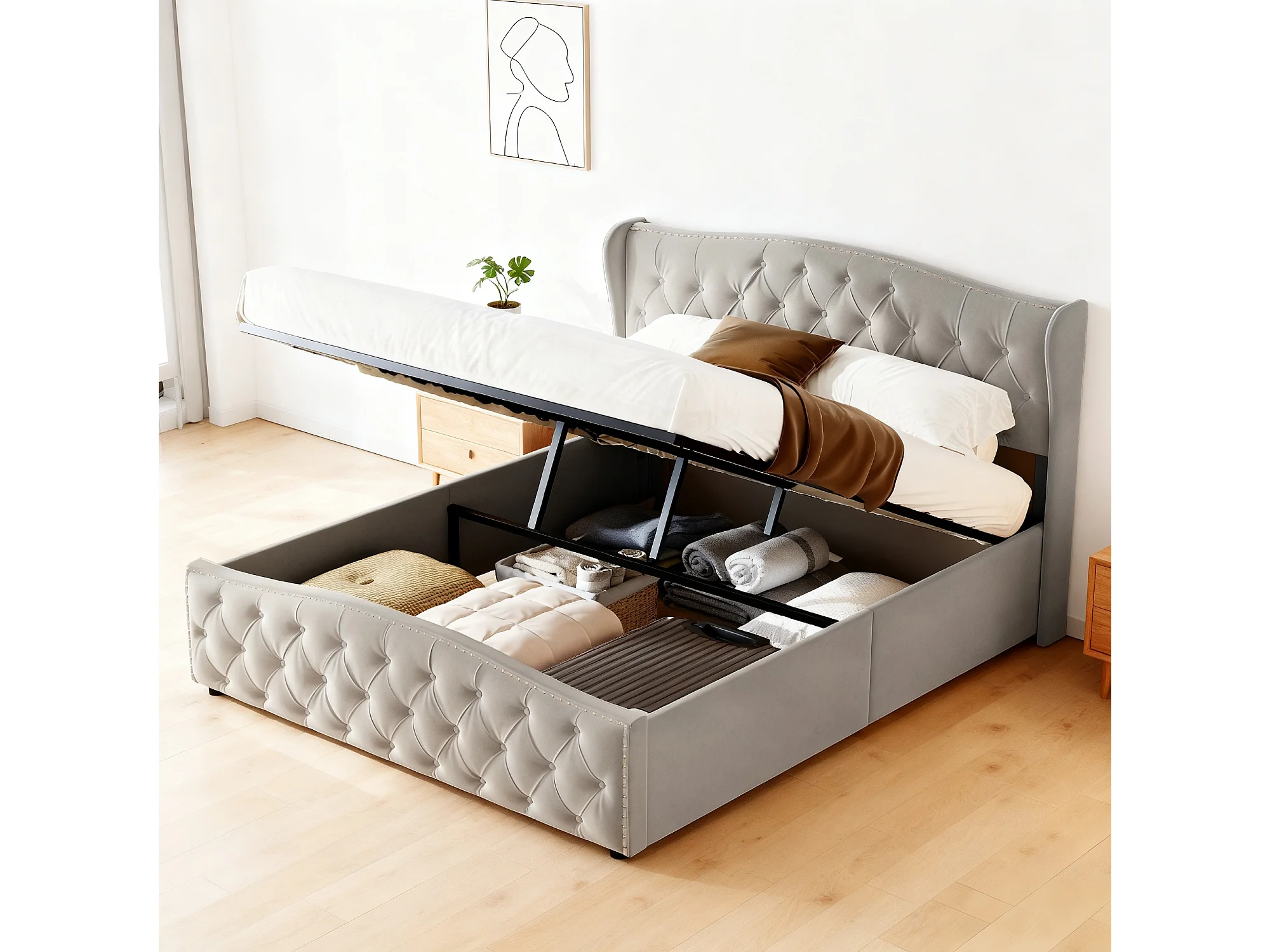 Lit coffre 160x200 cm avec sommier à lattes - lit adulte 160x200 cm - cadre de lit 160x200 cm - Lit double 160x200 cm soldes - tissu en velours - gris