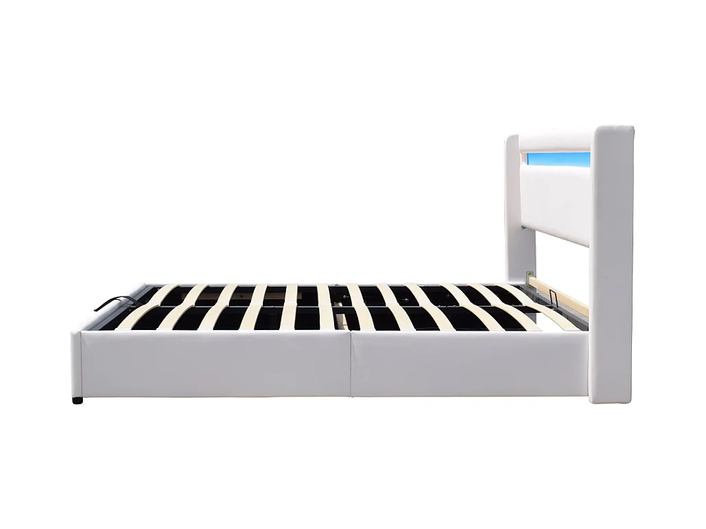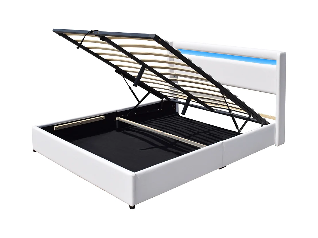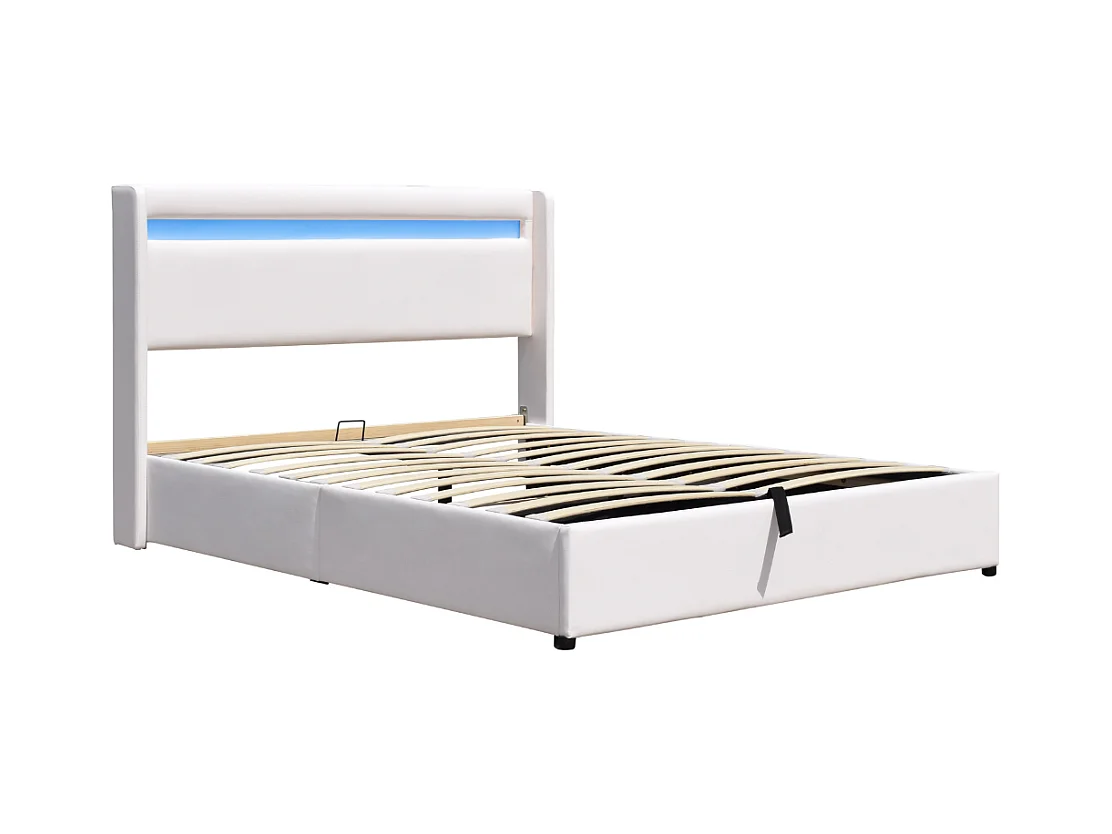 Lit coffre 160x200 cm déhoussable avec tête de lit LED - 14 lattes - montage rapide et facile - revêtement PVC simili entretien facile