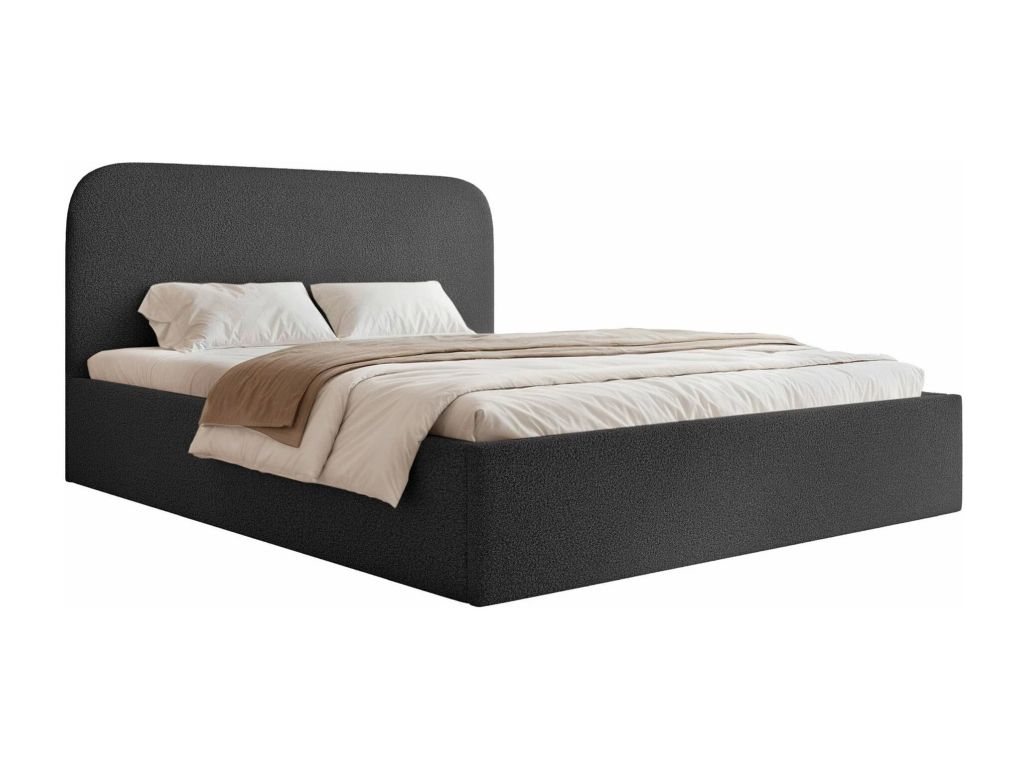 Lit coffre - 160x200 cm - en tissu bouclette graphite - SONVIVO
