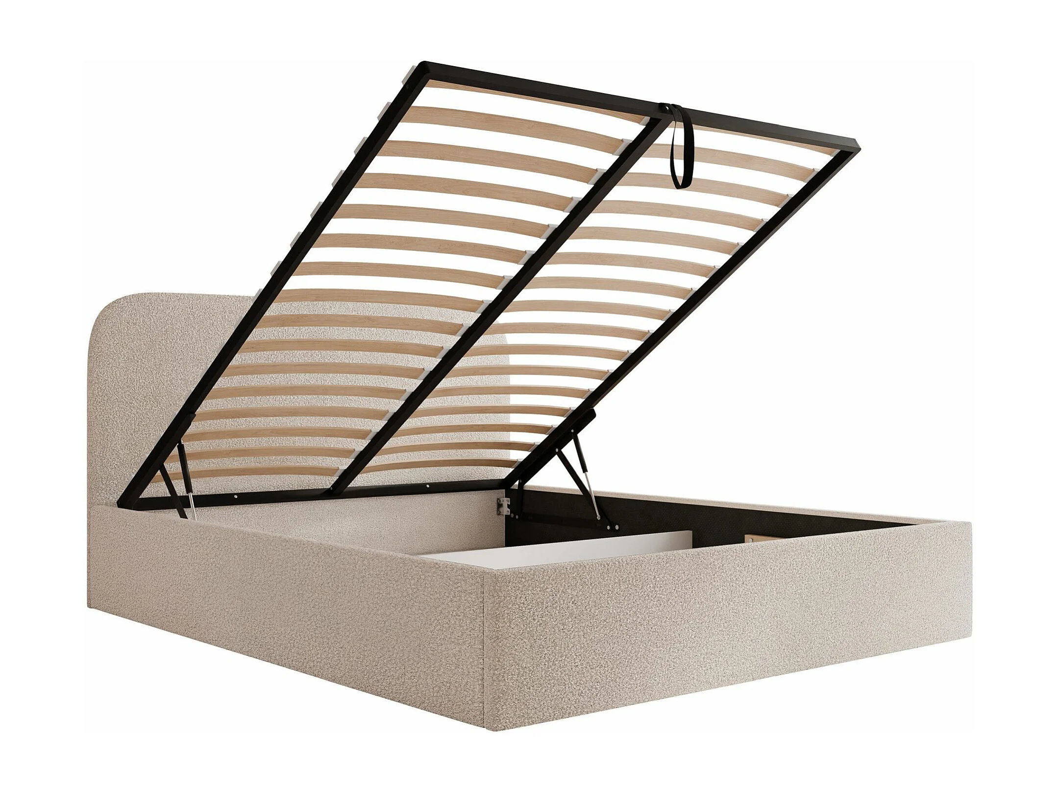 Lit coffre - 160x200 cm - en tissu bouclette gris beige - SONVIVO