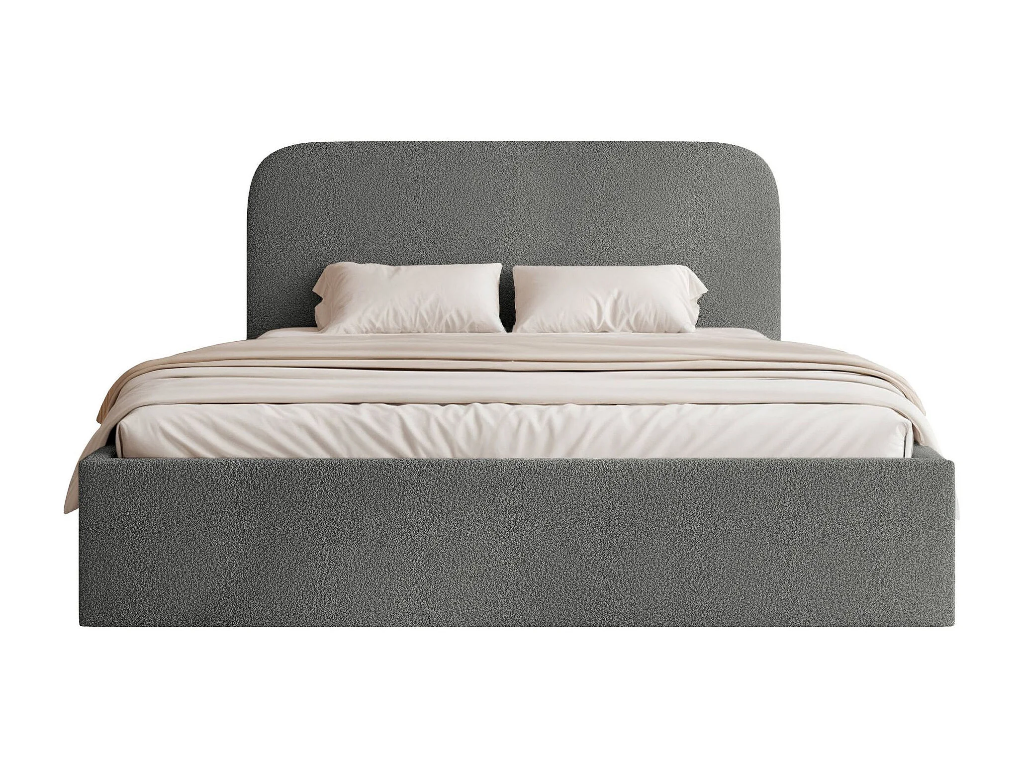 Lit coffre - 160x200 cm - en tissu bouclette gris foncé - SONVIVO