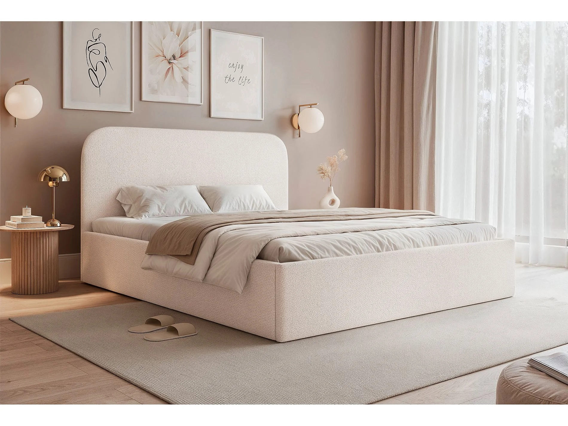Lit coffre - 160x200 cm - en tissu chenille crème - SONVIVO