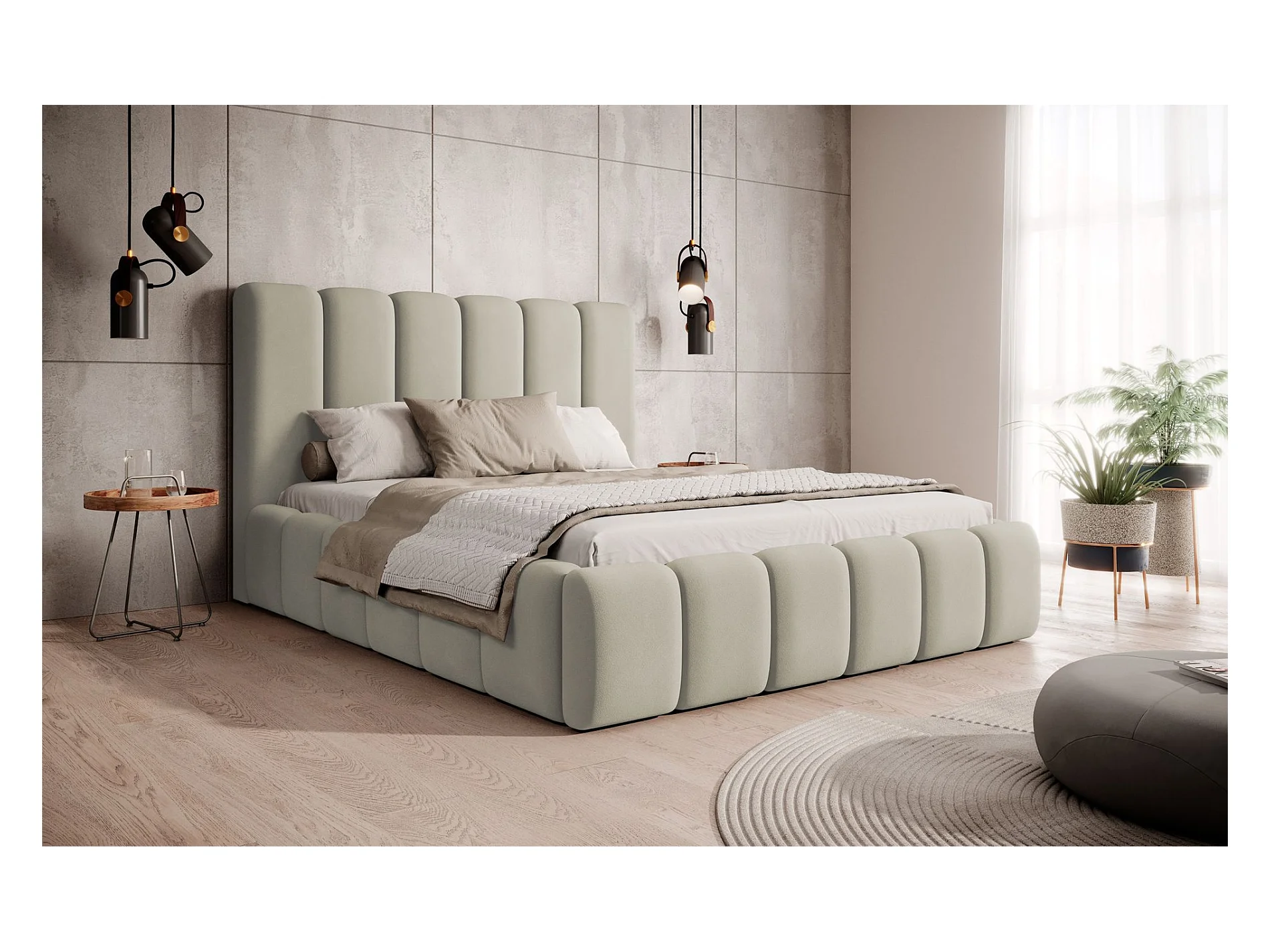 Lit coffre - 160x200 cm - en tissu velours grége - BISCOTTINO